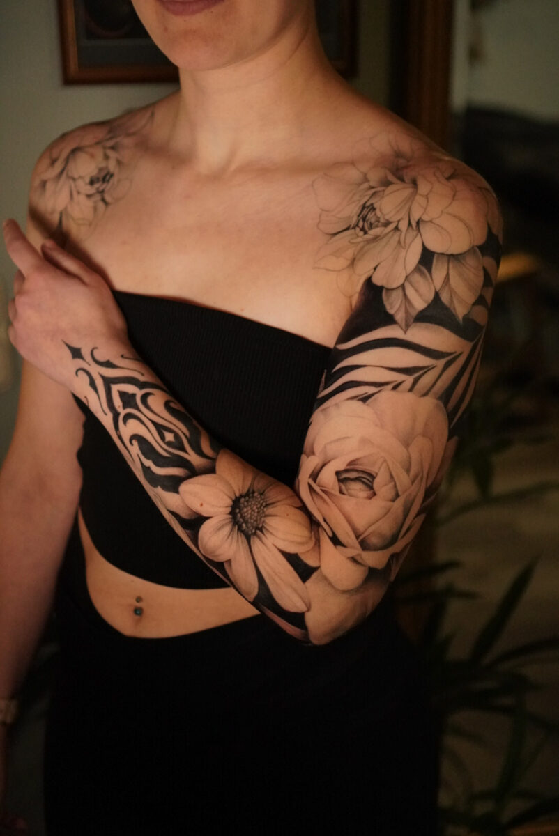 Seit nun zehn Jahren arbeite ich als Vollzeit-Tätowiererin. Das ist eine Reise, die mich geprägt hat und die mich immer wieder neu antreibt. Neben meinen Ich bin viel unterwegs, tätowiere in anderen Studios und Städten, weil es unglaublich inspirierend ist neue Orte und neue Sichtweisen kennenzulernen. Es tut gut, immer wieder aus dem Gewohnten auszubrechen und frischen Input zu sammeln.