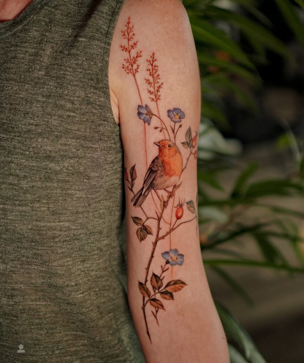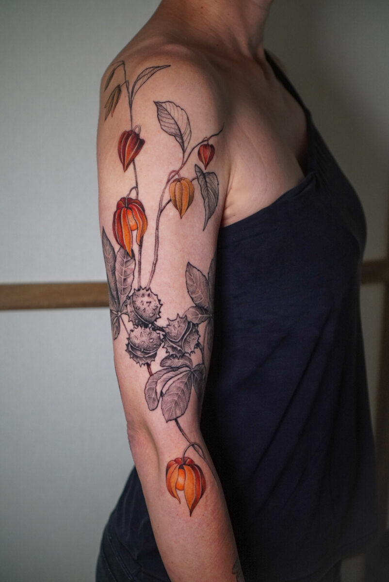 Beim Tätowieren habe ich mich auf botanische Illustrationen spezialisiert. Feine, klare Linien und natürliche Motive. Ich liebe es oft auch freihand direkt auch den Körper zu zeichnen um die individuelle Ästhetik der Körperform zu unterstützen. Mit dem Körperflow zu gehen, statt dagegen zu arbeiten macht jedes Motiv einzigartig.