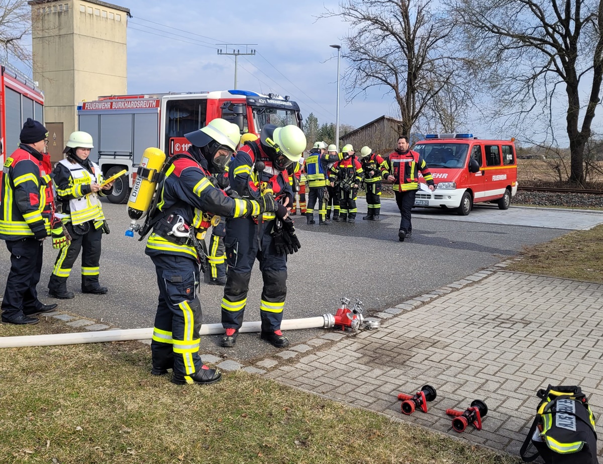 Ein besonderer Bestandteil der Ausbildung war die Durchführung einer Einsatzübung, die mit Unterstützung der Feuerwehr Burkhardsreuth und deren Löschfahrzeug unter der Leitung des stellvertretenden Kommandanten Sebastian Bayer durchgeführt wurde. Zudem fand eine intensive Belastungsübung auf der Atemschutzstrecke in Neuhaus statt, bei der KBM Haider und KBM Klettner unterstützten.