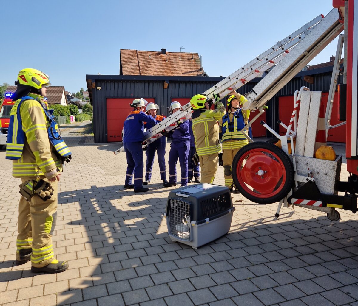 Bei Rückkehr ins Gerätehaus begrüßte der 2. Bürgermeister Dominik Baschnagel und der Feuerwehrreferent Andreas Greiner die Kameradinnen und Kameraden und überraschte sie mit einem Gutschein zum Eis essen. Mehrere Alarme zu Übungseinsätzen arbeiteten die Jugendlichen, mit Feuereifer, ab. Die Jugendlichen arbeiteten Einsätze wie „Person unter Container bei der Fa. CLAAS“, „Brand Freifläche im Altenstädter Wald“, „THL Personensuche im Altenstädter Wald“, „Ölspurbeseitigung Drechselstrasse“ und „Kleintierrettung – Katze auf Garagendach“ ab. Die Jugendlichen bewältigten die Aufgaben ohne größere Probleme.