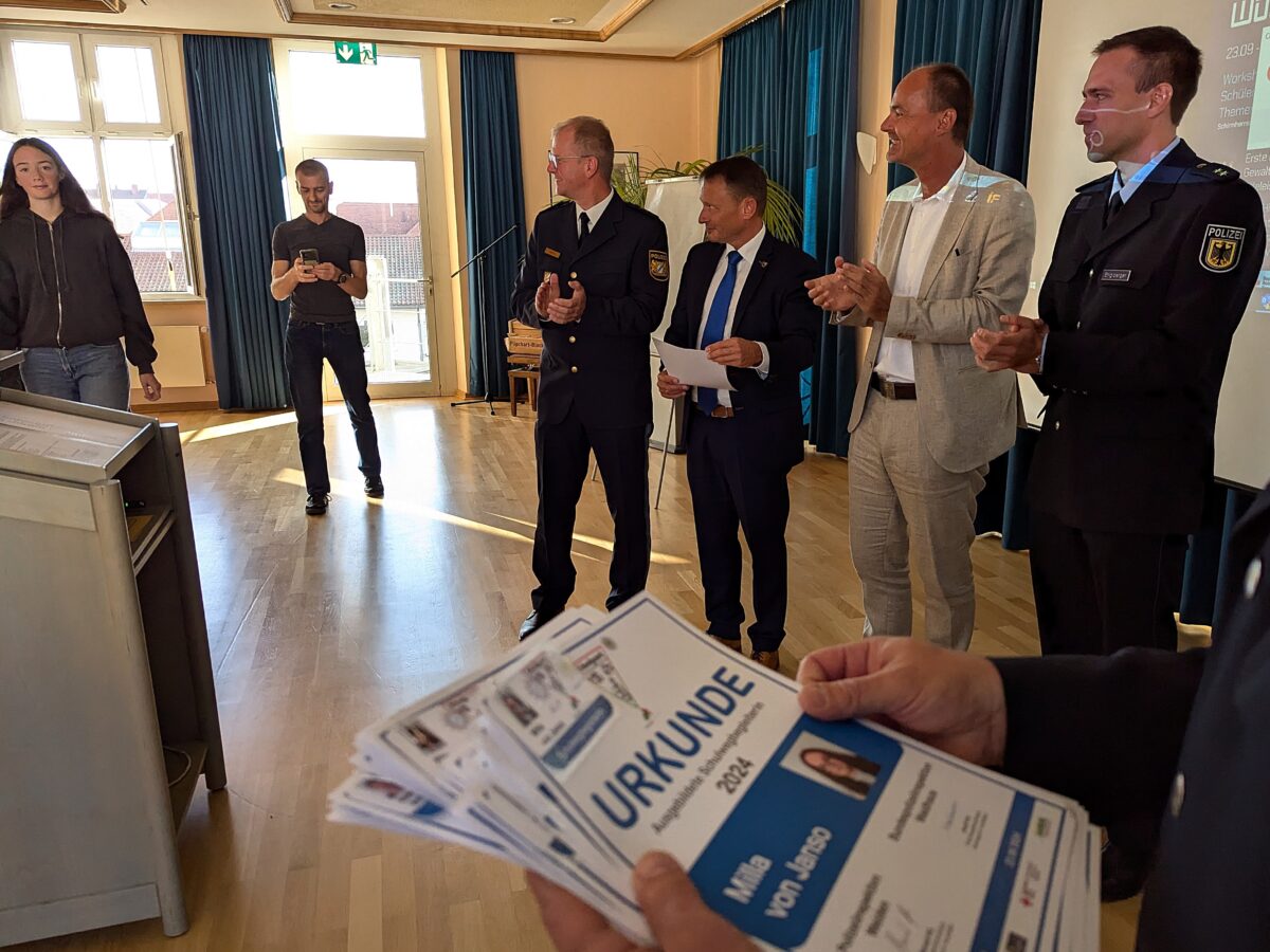 Auch für das nächste Jahr ist eine “Schoolguard-Ausbildung” geplant. Josef Prill von der Bundespolizeiinspektion Waidhaus ermutigt interessierte Schüler, sich zu melden: “Wer bereit ist, anderen zu helfen und gerne in Kontakt zu anderen Schülern steht, ist bei uns genau richtig.” Anmeldungen nehmen das Sekretariat der Schule, Manuel Ott (Polizei Weiden) und Josef Prill entgegen.