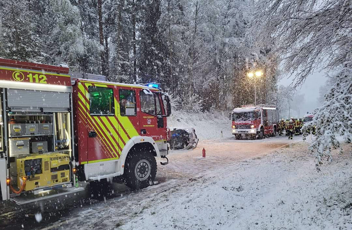 Winterliche Straßenverhältnisse mit Schneefall sind ursächlich für einen schweren Verkehrsunfall auf der Kreisstraße NEW43 zwischen Thurndorf und Troschenreuth am Sonntagmorgen kurz vor 6 Uhr. Die Polizeiinspektion Eschenbach teilt mit, dass der Fahrer die Kontrolle über sein Fahrzeug verlor, sich sein Kleinwagen im Straßengraben überschlug und auf der Beifahrerseite liegenblieb.