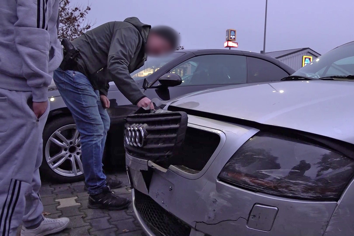 Während der Dämmerung fällt den Beamten im ProViDa-Fahrzeug ein stark beschädigtes Auto auf der Autobahn auf. Weil auch die Beleuchtung nicht korrekt funktioniert, entscheiden sich die Polizisten dafür, das Auto anzuhalten.