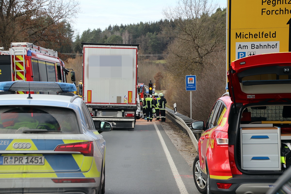 Im Einsatz waren die Feuerwehren Michelfeld und Auerbach, zwei Rettungswagen, ein Notarztfahrzeug (NEF) sowie die Polizei Auerbach. Mittlerweile wurde auch die Ampelanlage an der Baustelle abgebaut.