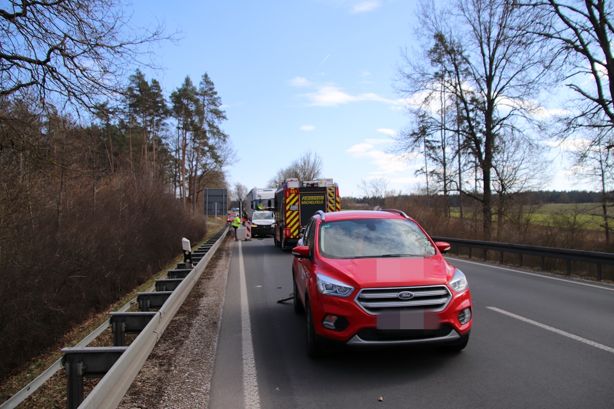 Am Donnerstagnachmittag gegen 13 Uhr ereignete sich auf der Bundesstraße 85 an der zweiten Ausfahrt nach Michelfeld ein schwerer Verkehrsunfall mit drei beteiligten Fahrzeugen. An einer Baustelle, die nur noch halbseitig gesperrt war und durch eine Ampelanlage geregelt wurde, kam es zu einem heftigen Auffahrunfall.