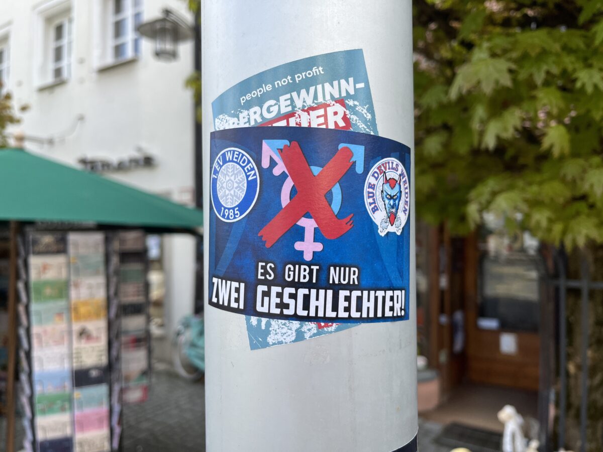 Auf Facebook haben sich die Blue Devils und der 1. EV Weiden unterdessen deutlich von „rechtsradikalem, homophoben sowie transphobem Gedankengut“ distanziert. Sie schreiben: „In den letzten Tagen wurden die Blue Devils und der 1. EV Weiden auf im Stadtgebiet angebrachte Aufkleber aufmerksam gemacht. Diese Sticker missbrauchen und instrumentalisieren das Logo der Blue Devils und des 1. EV Weiden für politische, rechte Hetze. Sowohl die GmbH als auch der Stammverein distanzieren sich klar und deutlich von rechtsradikalem, homophoben sowie transphobem Gedankengut, den Aufklebern und den Personen, die diese Aufkleber angebracht haben.“