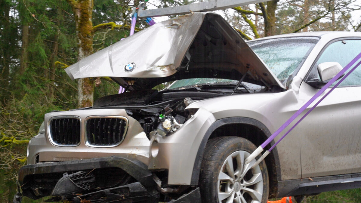 Bechtsrieth. Bei einem Unfall auf der B22 bei Bechtsrieth in Richtung Cham ist am Sonntagnachmittag ein Fahrzeug alleinbeteiligt von der Straße abgekommen und rund 100 Meter über Stock und Stein in den Wald gefahren.