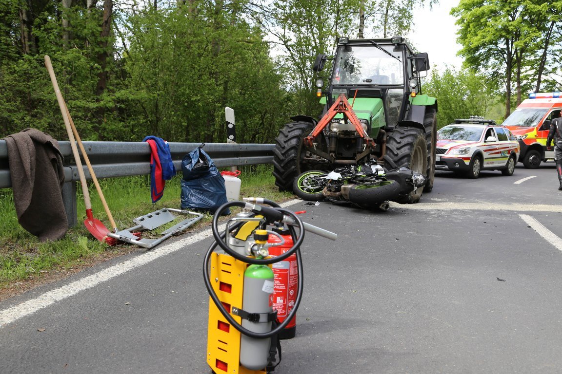 Totalsperre nach Unfall mit Motorrad und Traktor
