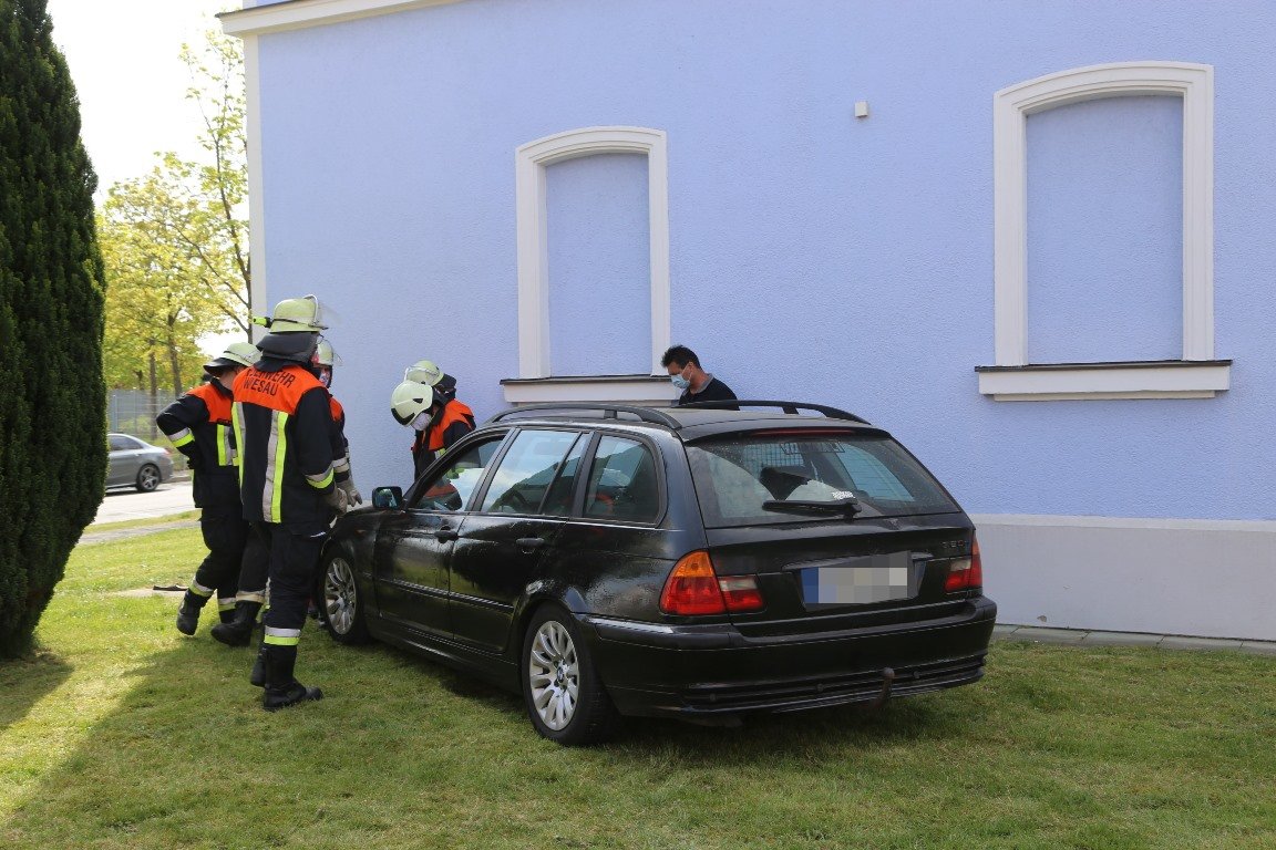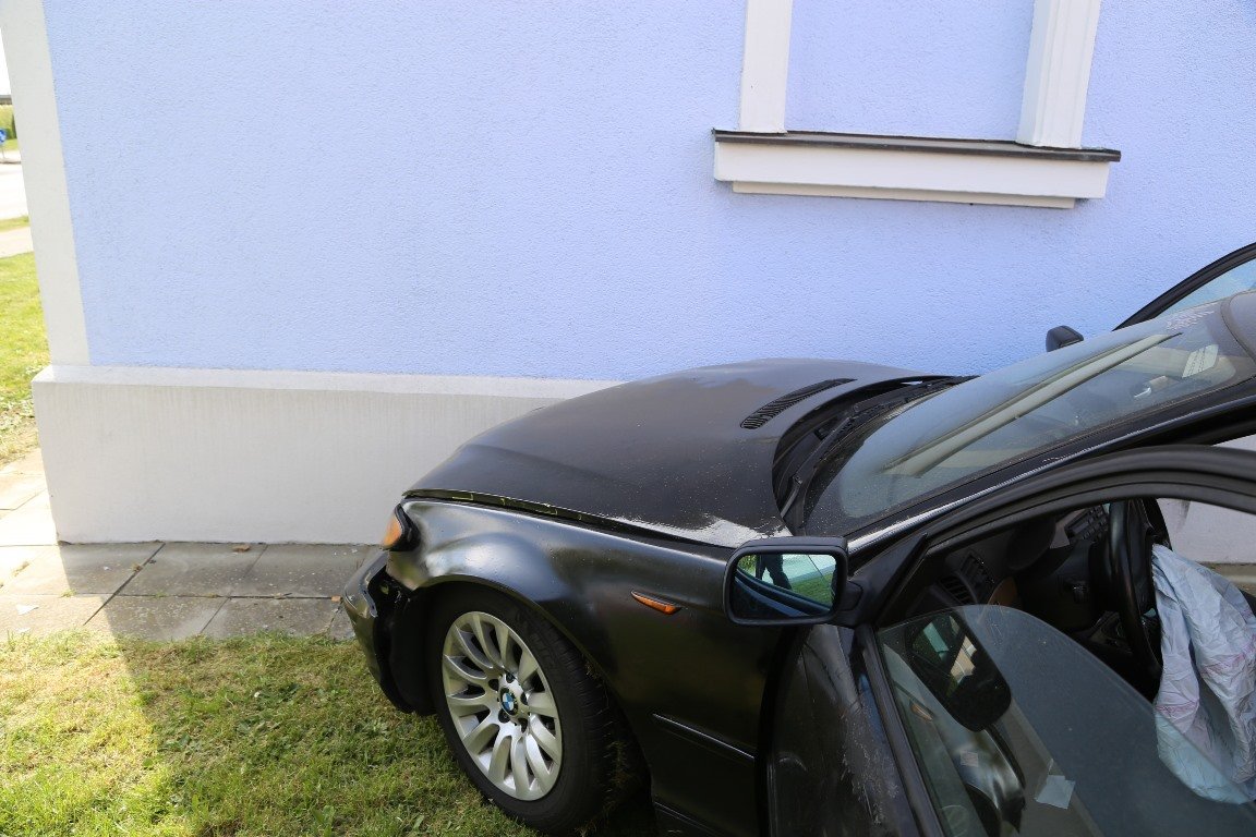 Wiesau. BMW prallt mit voller Wucht gegen Haus. Ein junger Mann (25) wollte von einem Parkplatz wegfahren und gab plötzlich Vollgas.