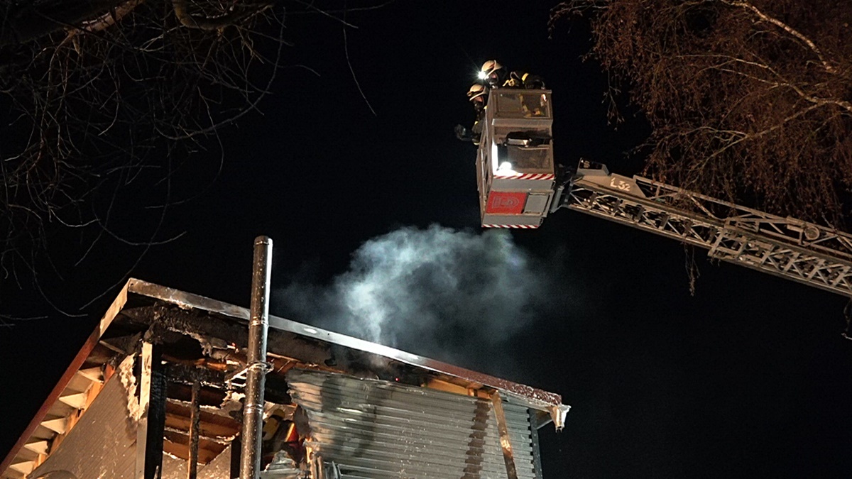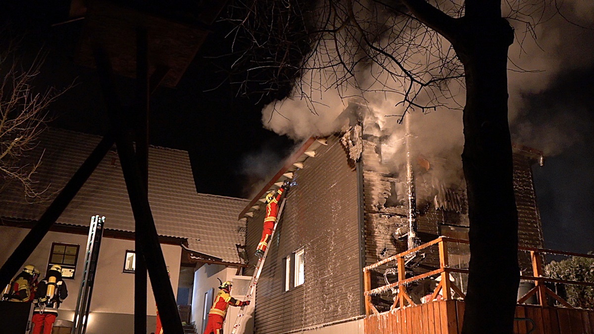 Nach ersten Erkenntnissen der Polizei war die Brandursache ein Holzofen, dessen Verrohrung Feuer gefangen hatte. Die etwas mehr als 50 Feuerwehrkräfte waren bei Minus acht Grad mehrere Stunden im Einsatz, bis alle Glutnester abgelöscht werden konnten. Der Sachschaden liegt nach ersten Erkenntnissen bei mehreren 10.000 Euro.
