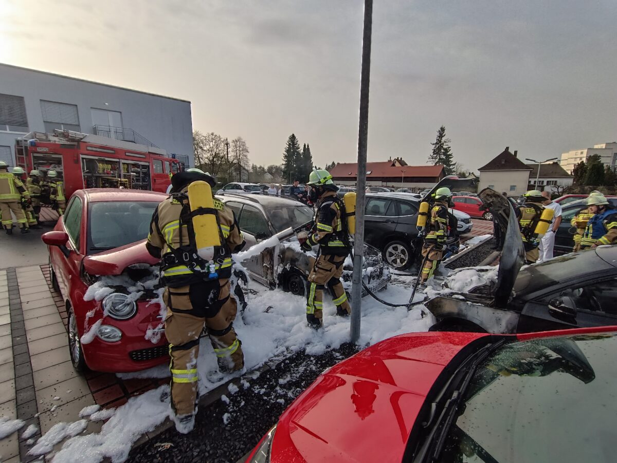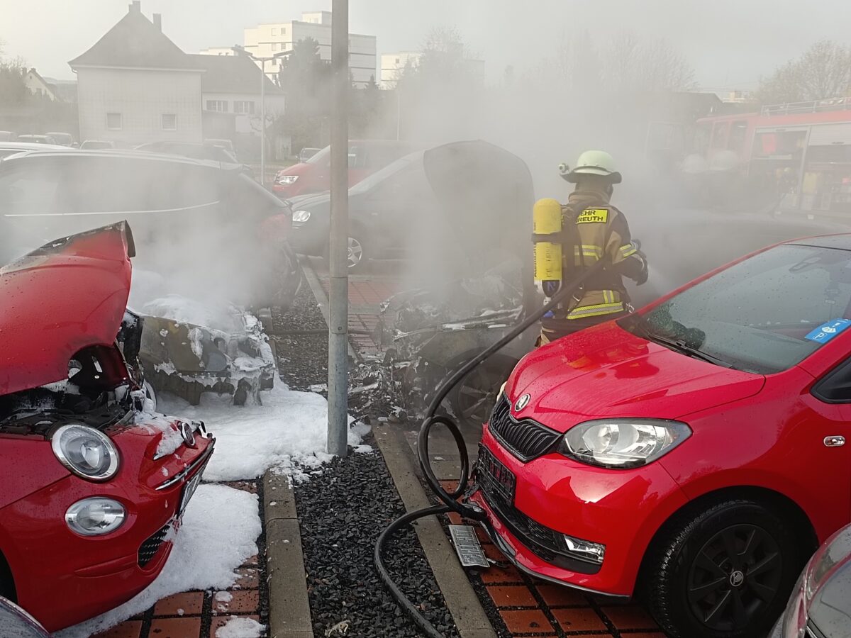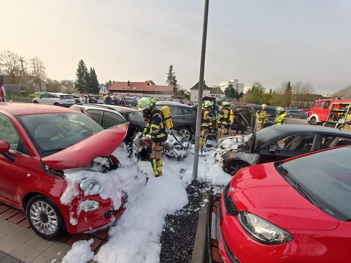 Tirschenreuth. Auf dem Parkplatz des Krankenhauses fingen mehrere geparkte Autos Feuer. Die Ursache ist noch unbekannt.