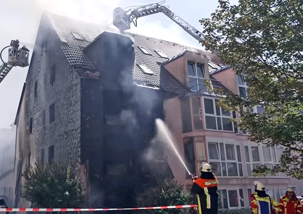 Die Feuerwehr braucht anschließend mehrere Stunden, um den Brand über hohe Drehleitern in den Griff zu bekommen. Umliegende Gebäude wie auch das Rathaus werden evakuiert. Am Nachmittag sind die Löscharbeiten abgeschlossen. Die meisten Bewohner der anderen evakuierten Häuser können zurück in ihre Wohnungen. Das Mehrfamilienhaus, in dem es brannte, bleibt unbewohnbar.