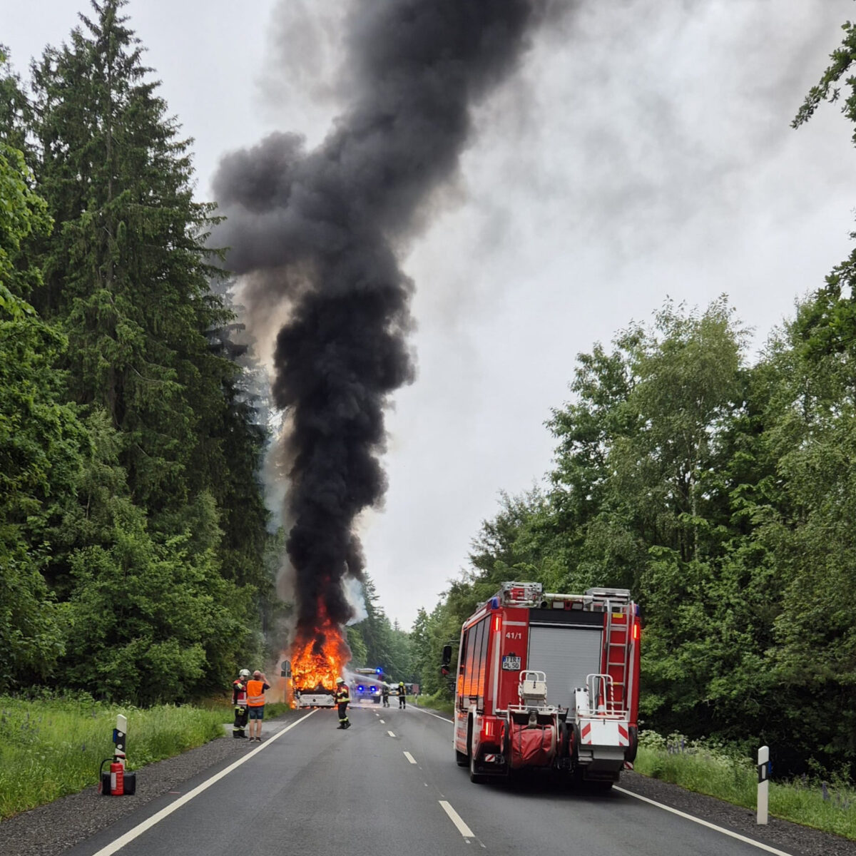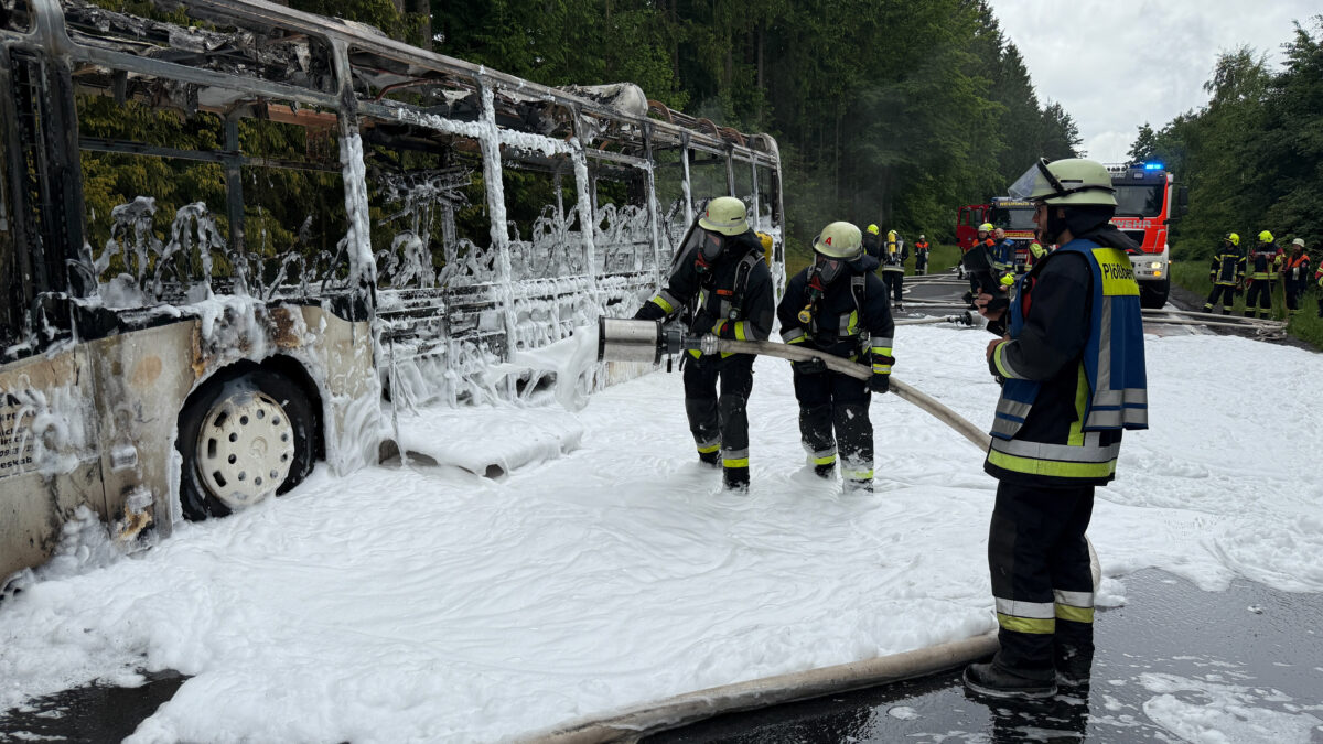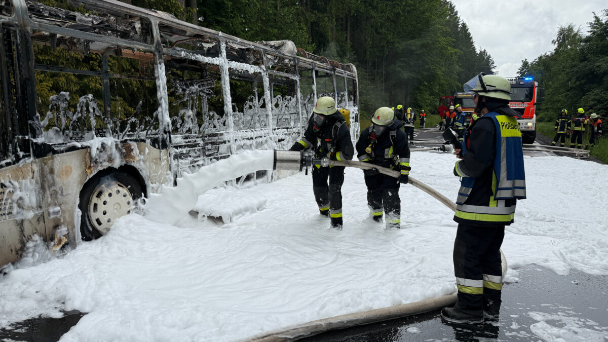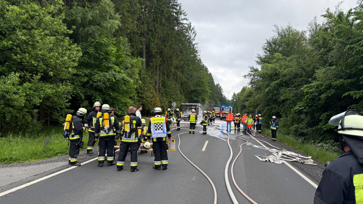 Bus bei Windischeschenbach in Brand geraten