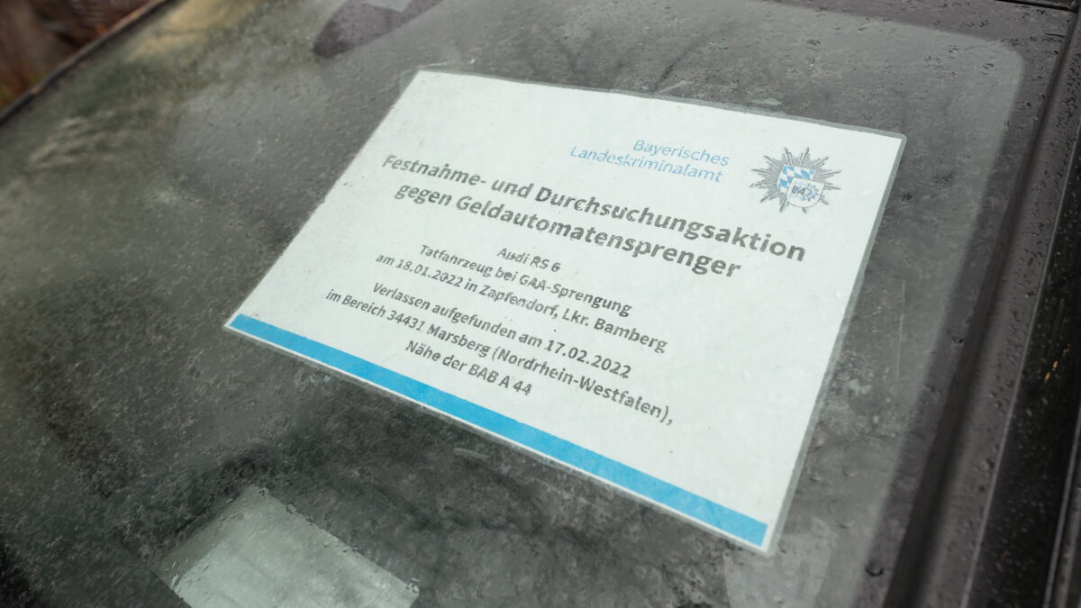 Möglicherweise ging das auch schneller: Die Besonderheit der niederländisch-marrokanischen “Plofkraker” sind ihre hochmotorisierten Fluchtwagen. Für die Flucht verwendeten die Täter in den angeklagten Fällen teils einen schwarzen Audi RS6 (600 PS, Höchstgeschwindigkeit 302 km/h). Einer konnte sichergestellt werden. Er war in Nordrhein-Westfalen verunglückt und am Straßenrand abgestellt worden.