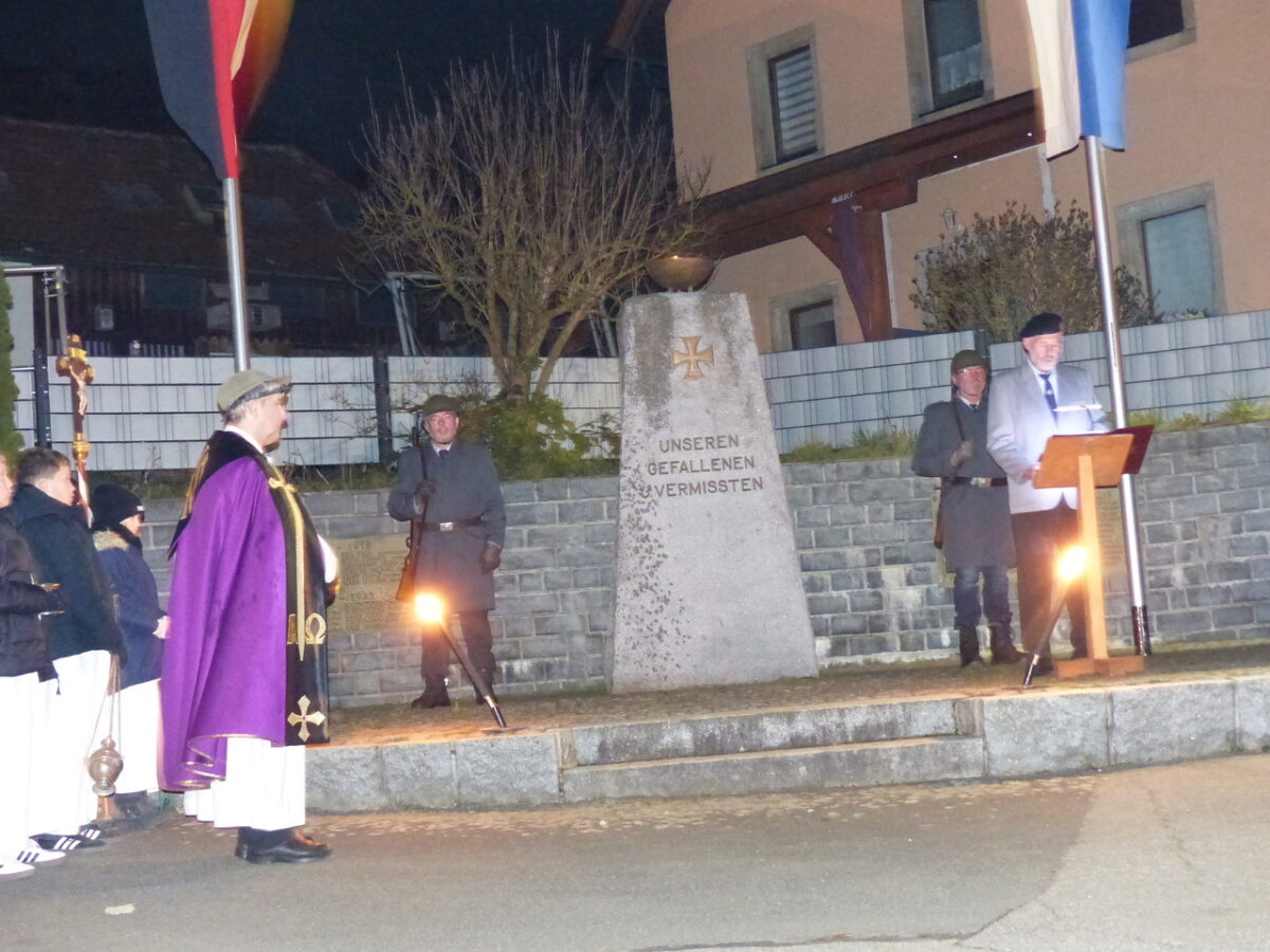 Die Veranstaltung wurde mit dem Kameradschaftslied, “Ich hatt’ einen Kameraden”, und drei Böllerschüssen umrahmt. Kammerer gedachte in einem Gebet den im vergangenen Jahr verstorbenen Vereinskameraden Ludwig Prüfling und Gerhard Guse. Die Feier endete mit der Bayernhymne und dem Deutschlandlied, die gemeinsam gesungen wurden.