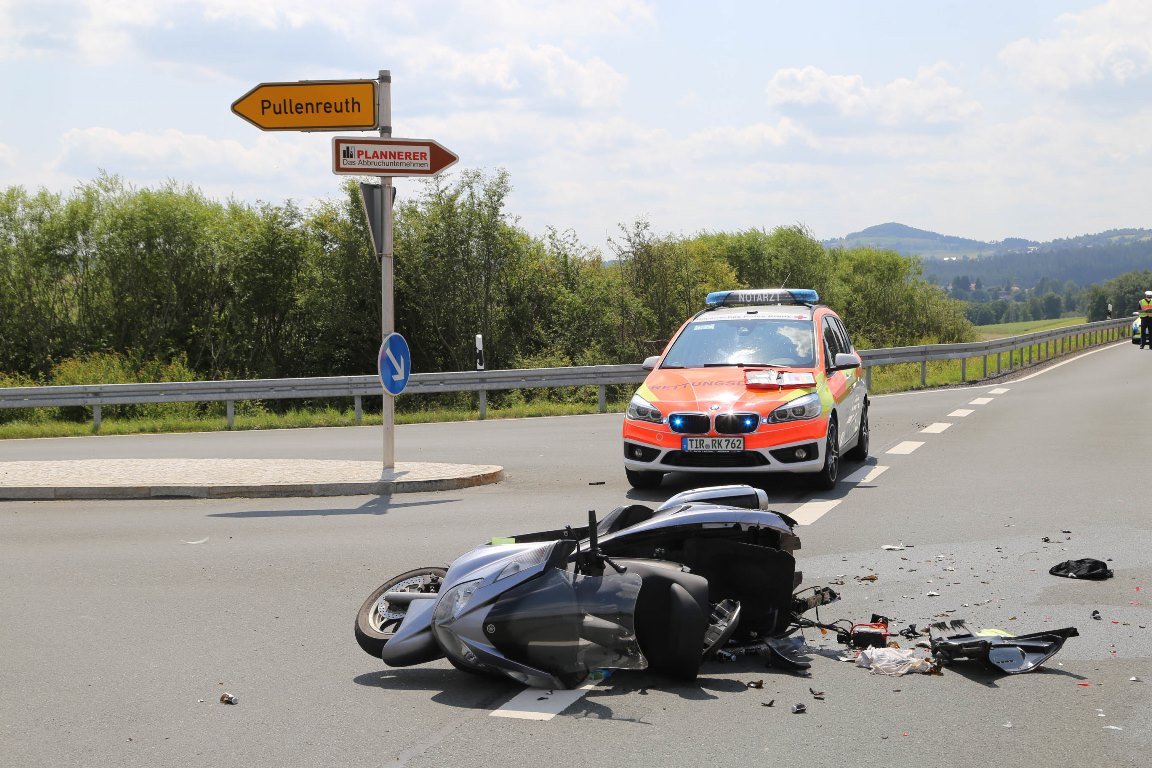 Der Mann (48) fuhr mit seinem Motorroller, Marke Yamaha, die Staatsstraße 2177 von Kemnath in Richtung Marktredwitz. Zur gleichen Zeit wollte eine Frau (56), ebenfalls aus den Landkreis Tirschenreuth, mit ihrem Audi aus Pullenreuth kommend an der Einmündung Mengersreuther Straße / Staatsstraße 2177, nach links in die bevorrechtigte Staatsstraße einbiegen.