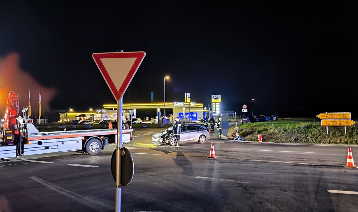 Der Fahrer des Opel Astra konnte nicht mehr rechtzeitig abbremsen und krachte dem einfahrenden Fahrzeug in die Fahrertüre. Alle drei Personen wurden verletzt und zwei kamen mit dem Rettungsdienst in ein Klinikum. Beide Fahrzeuge wurden erheblich beschädigt und mussten abgeschleppt werden. Der Sachschaden liegt nach ersten Schätzungen der aufnehmenden Polizeibeamten aus Eschenbach zwischen 25.000 und 30.000 Euro.