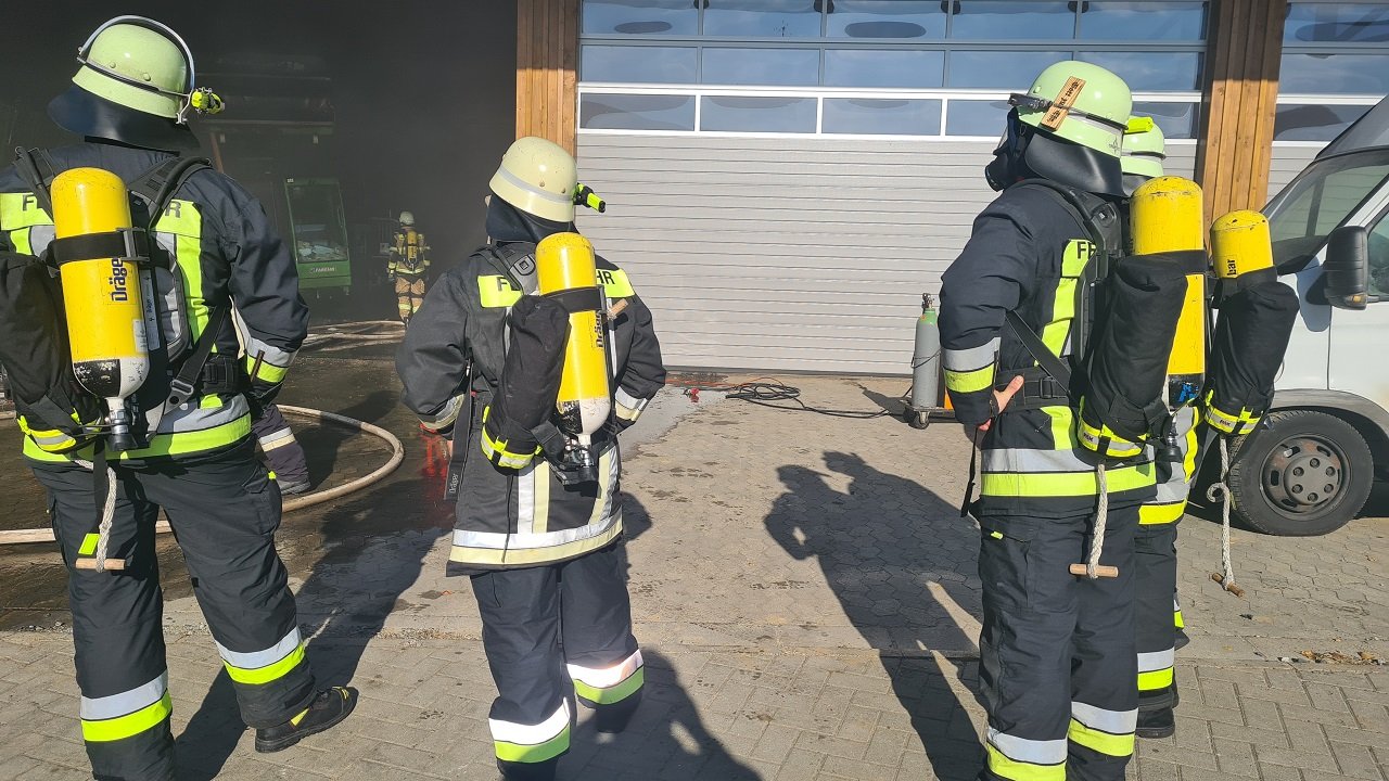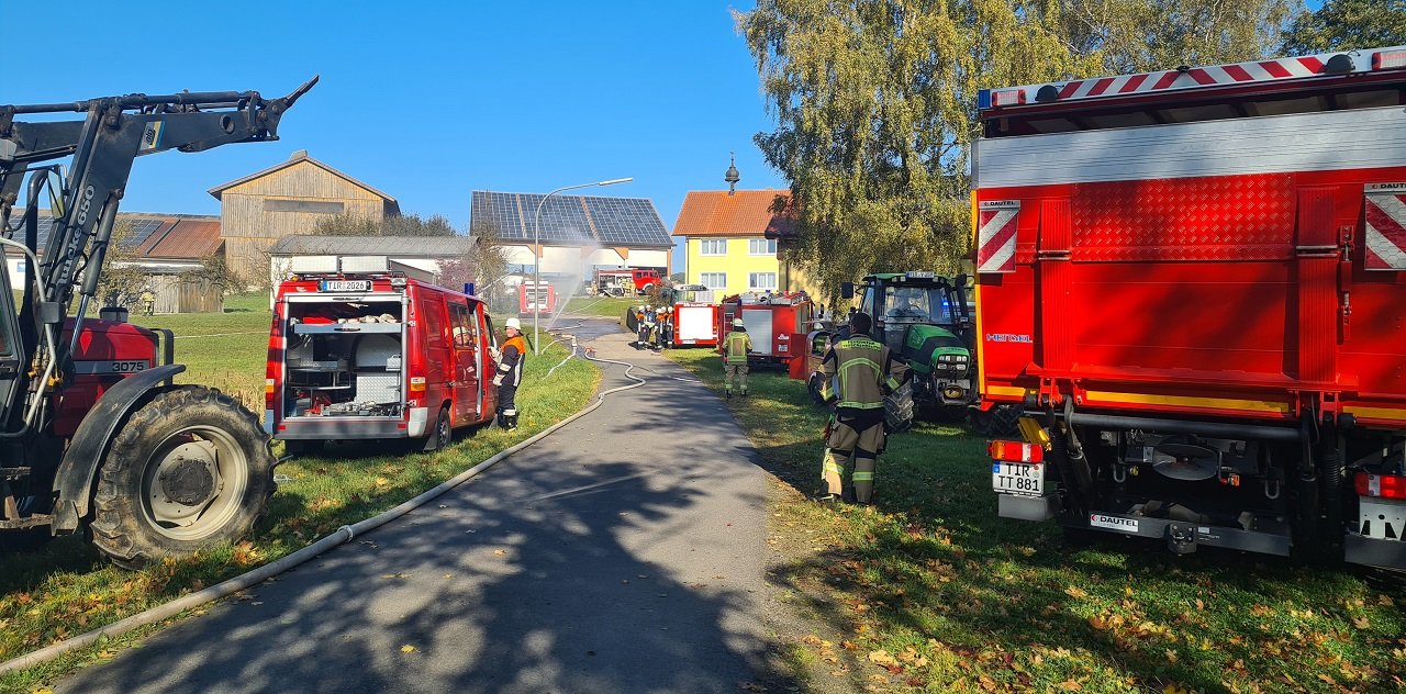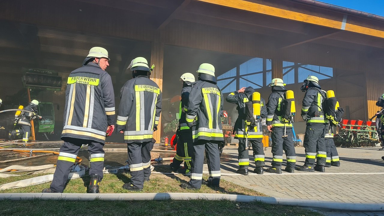 Mähring. Einsatzkräfte mussten heute zu einer landwirtschaftlichen Halle ausrücken. Eine Erntemaschine hatte dort Feuer gefangen.