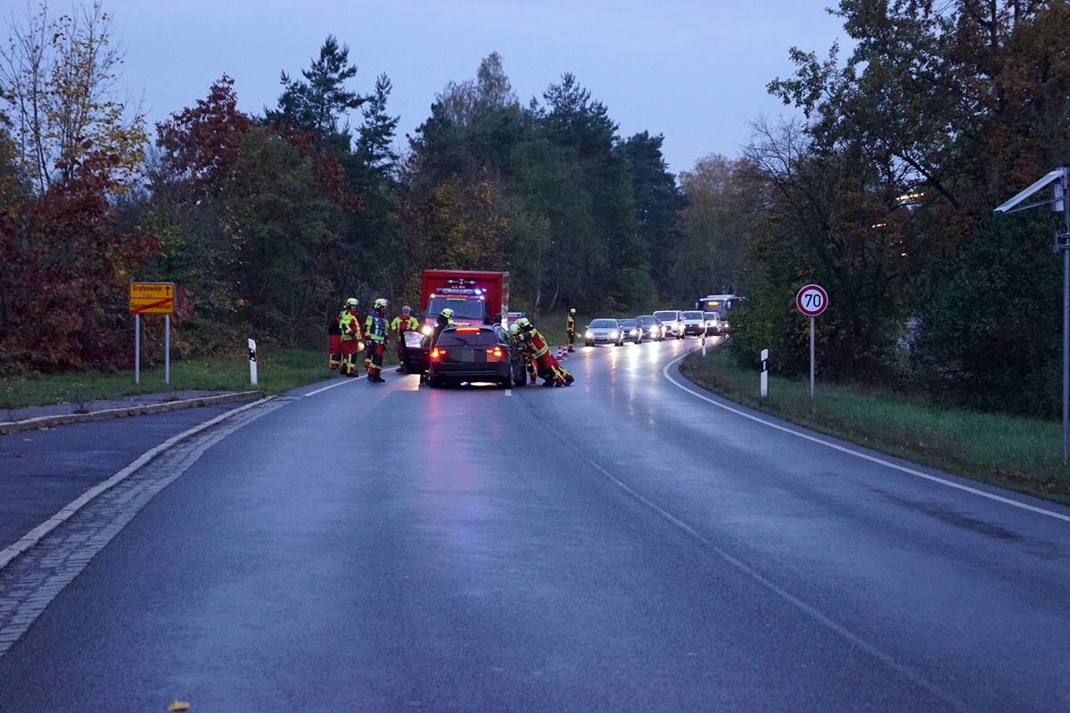Ein BMW Fahrer befuhr die B299 vom Gründerzentrum in Richtung Grafenwöhr. In Geismannskeller kam er plötzlich mit seinem Fahrzeug auf die Gegenspur und stieß dort seitlich mit einem Skoda, der von einer Frau aus Grafenwöhr gesteuert wurde, zusammen.