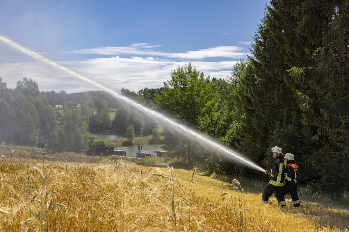 Am Samstag gegen 13.30 Uhr brannte nordöstlich des Staatsgutes Wöllerhof eine landwirtschaftliche Ackerfläche, die bei Arbeiten mit einer Strohballenpresse in Brand geraten ist. Das Feld wurde durch die anwesenden Landwirte sowie der Feuerwehren aus Neustadt, Altenstadt, Störnstein, Lanz, Wöllershof und Parkstein, die mit rund 100 Kräften vor Ort waren, abgelöscht. Ein Übergreifen auf den in unmittelbarer Nähe befindlichen Wald konnte erfolgreich verhindert werden.