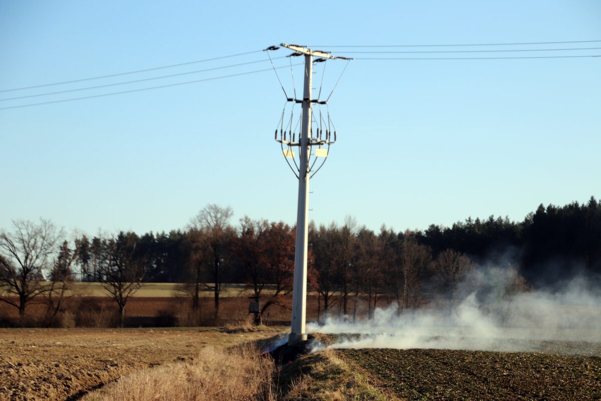 Am Samstagnachmittag gegen 16.15 Uhr bemerkte ein Anwohner in Gössenreuth einen Funkenflug an einem Strommasten. Dieser Mast stand auf einem Feld südlich der Staatsstraße 2160 bei Gössenreuth. Durch herabfallende Teile entzündete sich der Boden und es kam zu einem kleinen Flächenbrand.