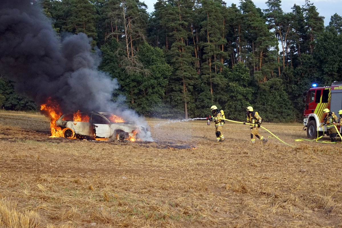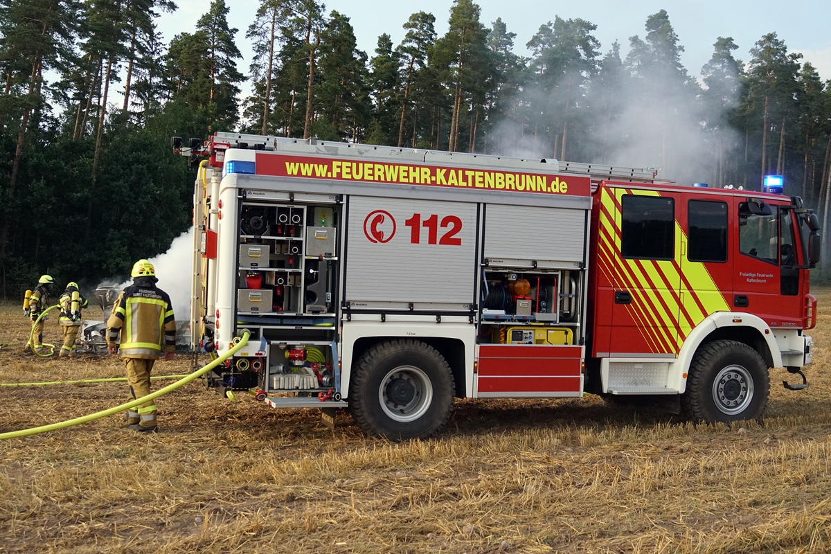 Feuerwehr Kaltenbrunn im Einsatz: Audi brennt auf einem Feld
