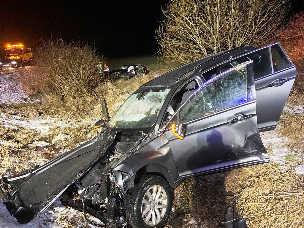Durch die Wucht des Aufpralls schleuderten beide Autos in den angrenzenden Straßengraben. Wie durch ein Wunder verletzten sich die beiden Fahrer nur leicht. Den Beifahrer im Auto der Unfallverursacherin brachte der Rettungsdienst in ein Krankenhaus.