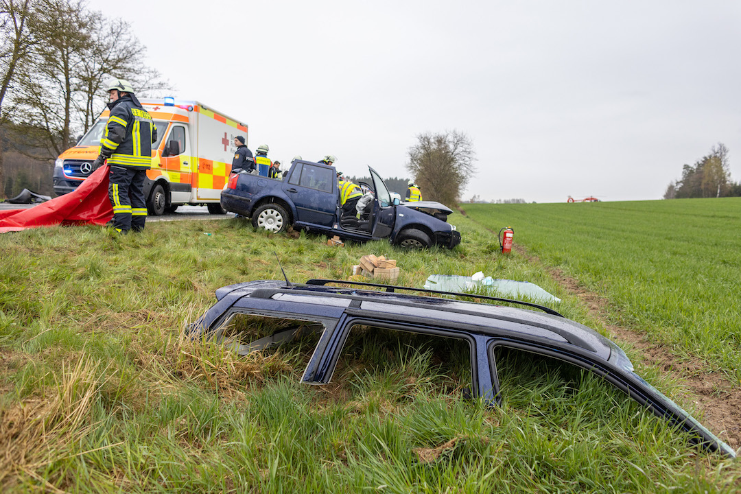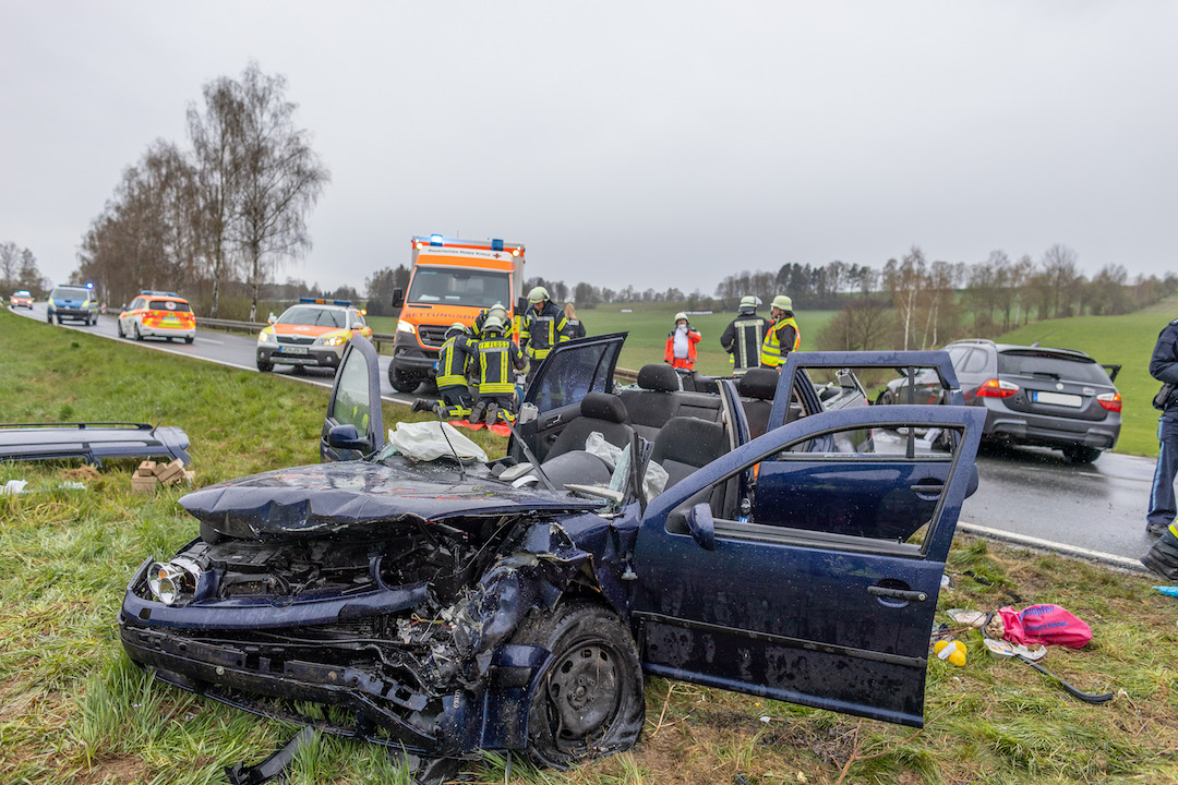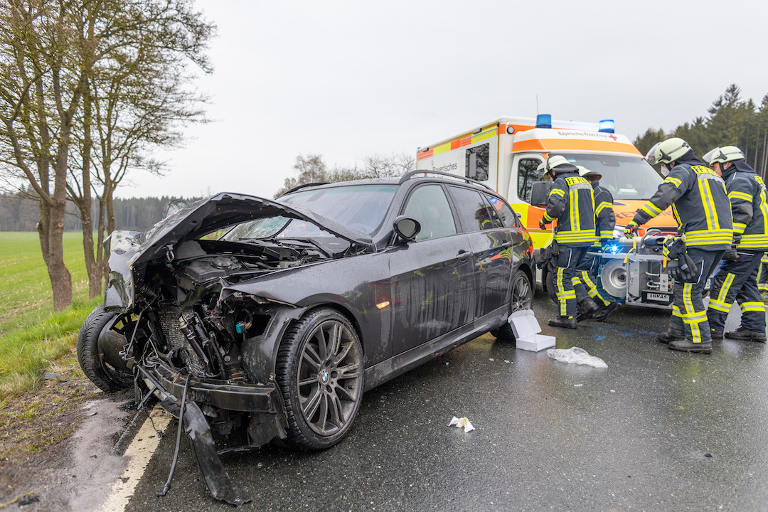 Schwerer Verkehrsunfall am Dienstagnachmittag auf der Staatsstraße 2172 zwischen Plößberg und Püchersreuth. Nach ersten Angaben der Polizei überholte gegen 15 Uhr ein Autofahrer aus dem Landkreis Tirschenreuth, der von Wildenau Richtung Neustadt/WN unterwegs war, mit seinem BMW einen Holzlaster. Dabei übersah er einen entgegenkommenden VW Golf. Es kam zum Frontalcrash.
