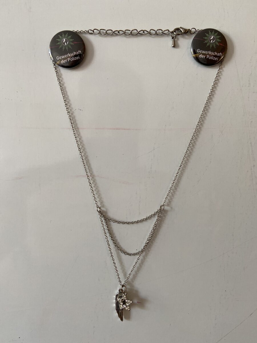 Auf dem Gelände des Parkplatz Naabwiesen, wo der Boxxenstopp stattfand, wurde unweit der Kinderpolizeiwache eine Halskette gefunden. Offenbar wurde sie bei der Veranstaltung dort verloren. Die Halskette wird derzeit noch bei der Polizeiinspektion Weiden als Fundsache verwahrt und wartet nur darauf, seinem Eigentümer oder seiner Eigentümerin wieder übergeben zu werden. Bei der Kette handelt es sich um eine silberne Halskette, vermutlich Modeschmuck, mit einem Anhänger „Flügel“ und einem Anhänger „Stern“.