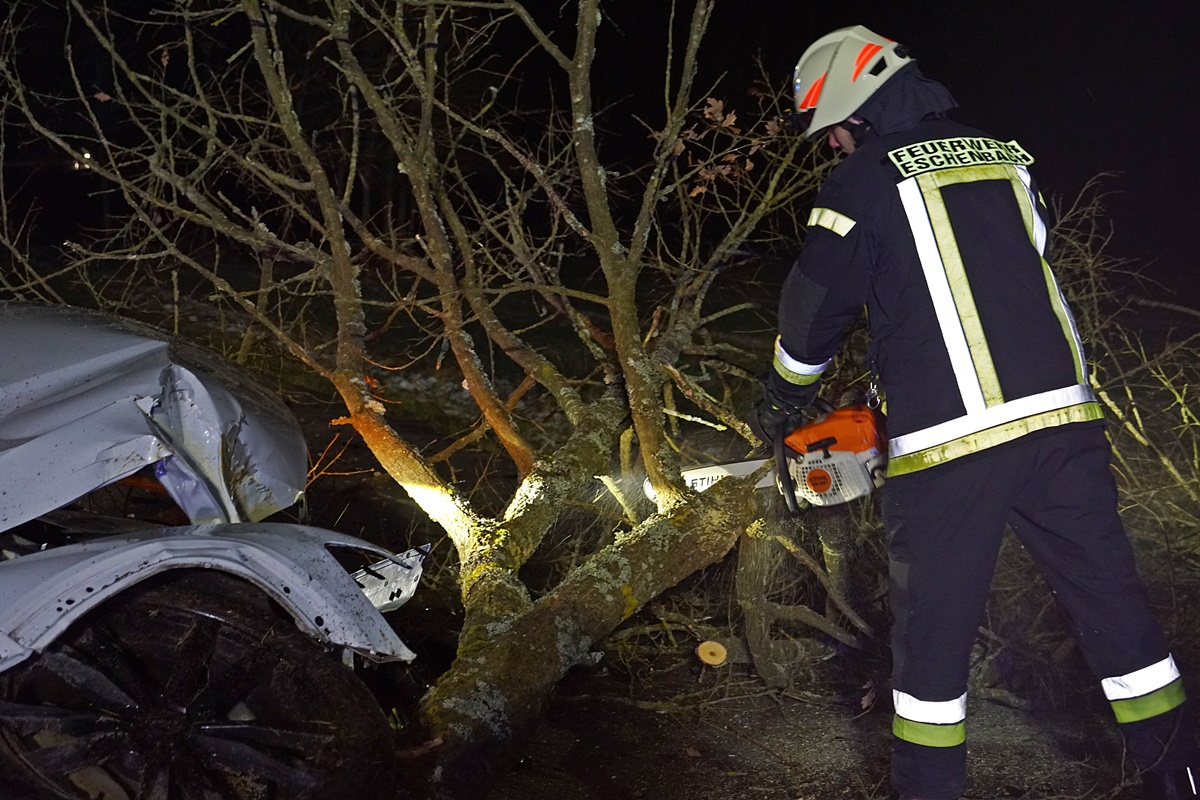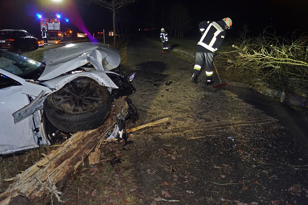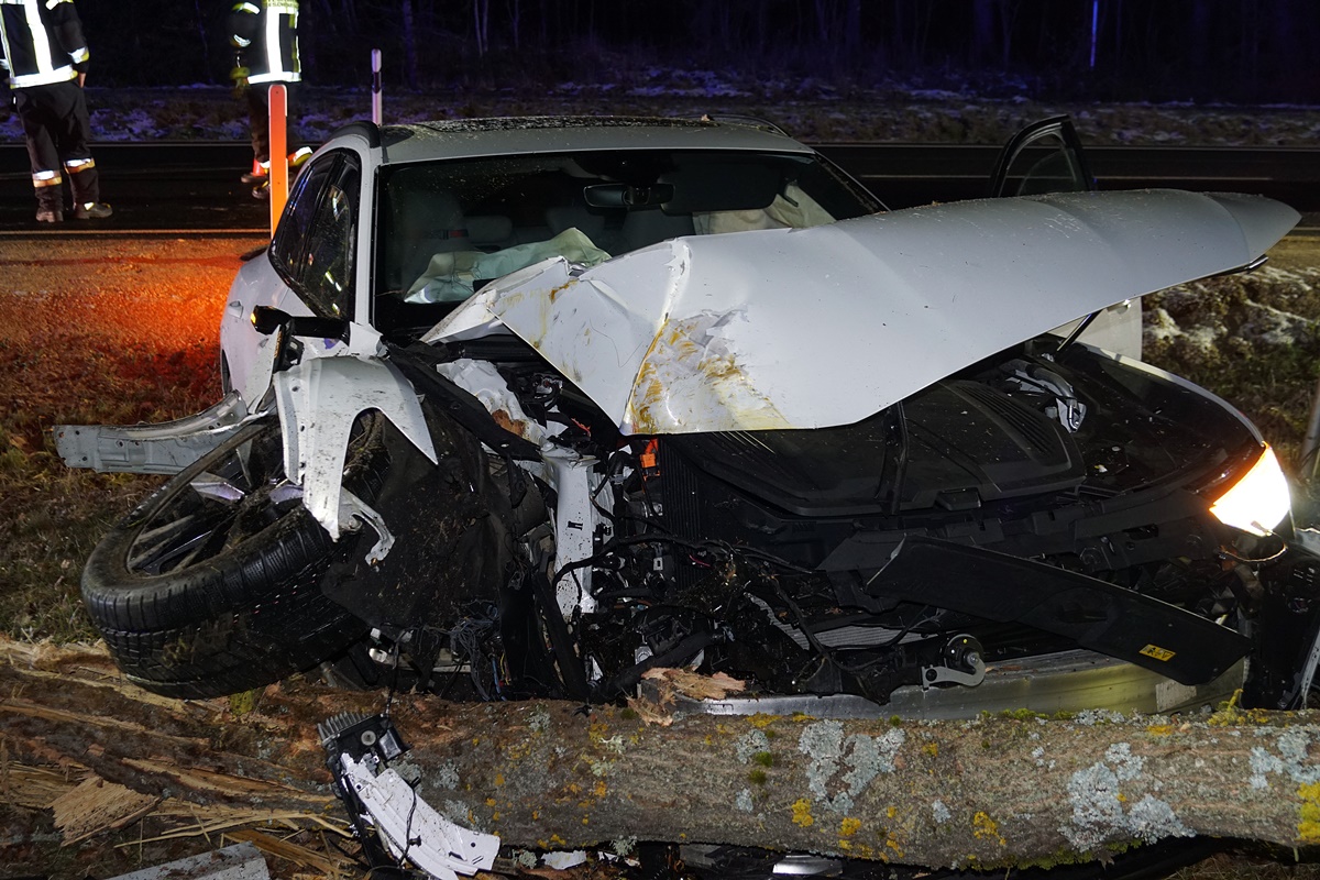 Gegenverkehr übersehen: Auto kracht gegen Baum