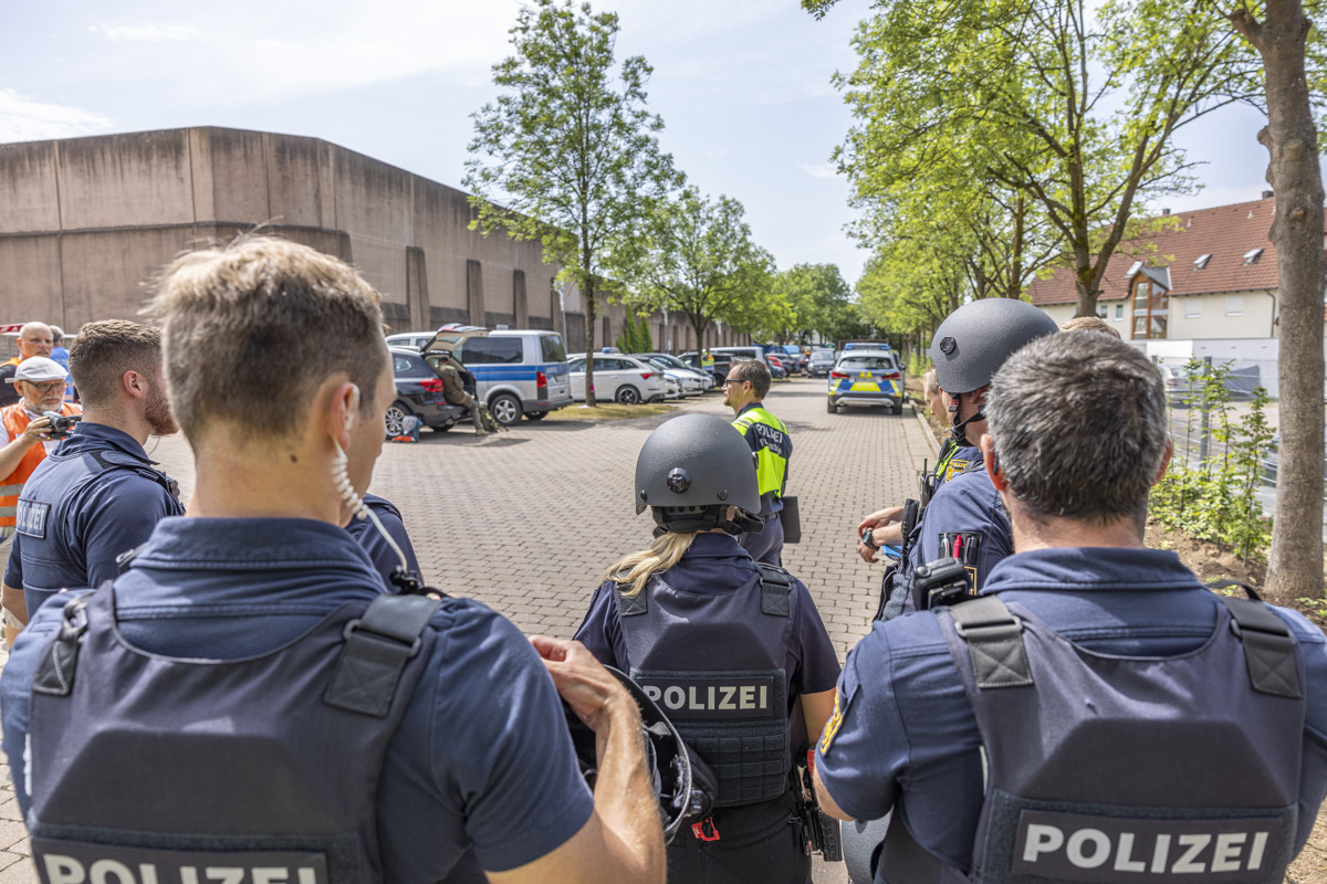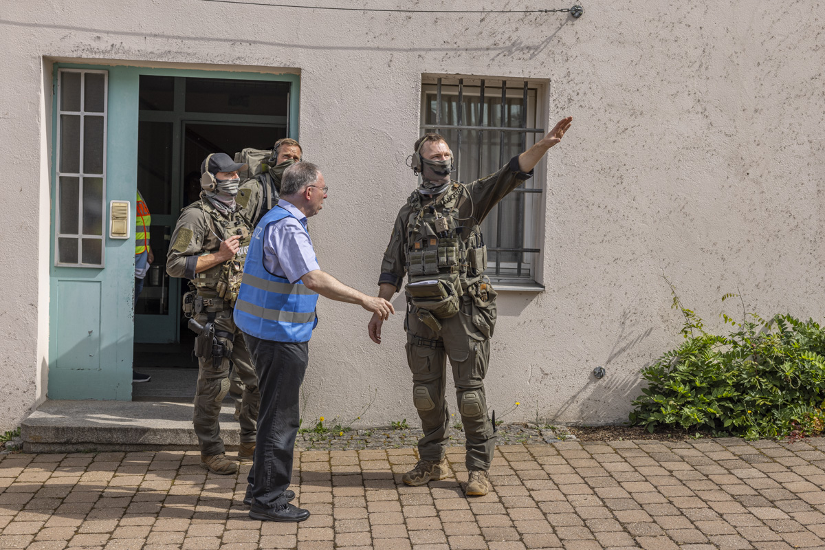 So aber gibt’s für die Geiselnehmer eine Zitronenlimo und viel Lob für die schauspielerische Leistung. Ohnehin: Das erste Resümee fällt durchaus positiv aus. Die Geiselnahme konnte ohne Verletzte und noch vor der Zeit beendet werden. “Die Übung an sich hat reibungslos funktioniert”, sagt Leitender Polizeidirektor Müller. Er dankt der Bevölkerung für die Geduld bei den Straßensperrungen. “Für uns war vorrangig, dass wir unsere Konzeption und Logistik überprüfen.”