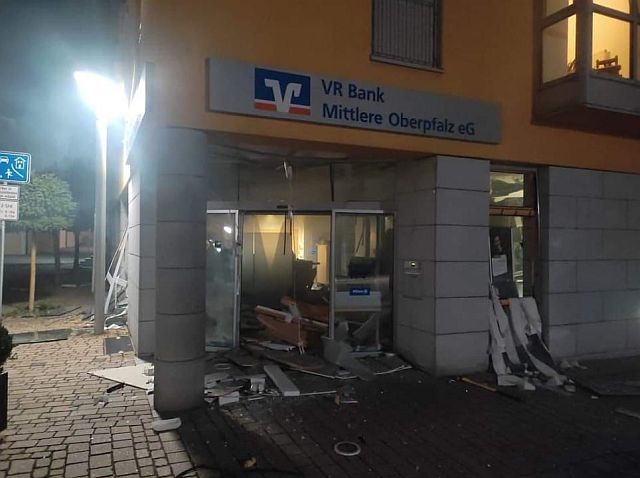 Unbekannte haben in der Nacht auf Mittwoch gegen 3 Uhr in Wernberg-Köblitz am Marktplatz einen Geldautomat gesprengt. Der Tatort liegt in einem Wohngebiet unmittelbar an der B14 sowie in der Nähe der Autobahnen A6 und A93. Bei dem Automaten handelt sich um ein in der Bankfiliale verbautes Gerät. Die unbekannten Täter flüchteten anschließend. Die Fluchtrichtung ist noch nicht bekannt.