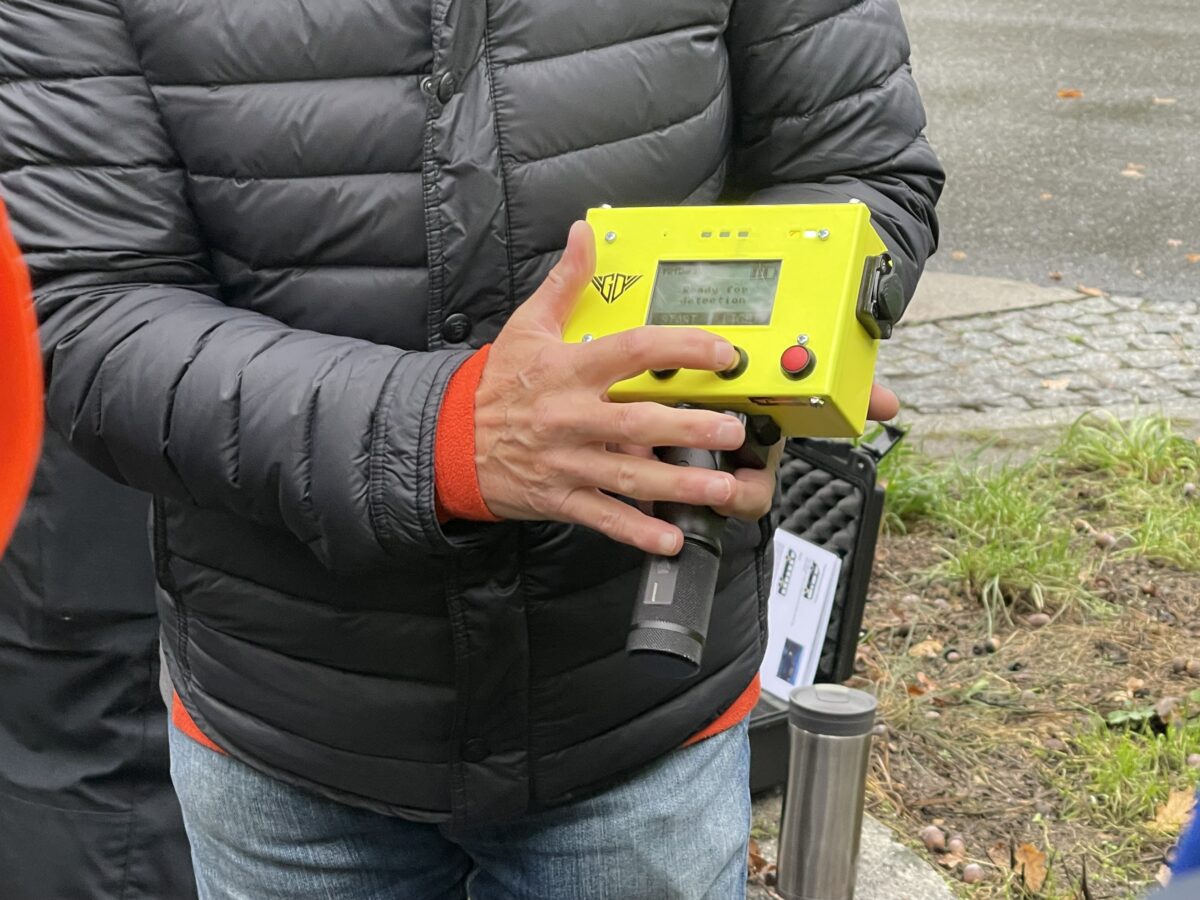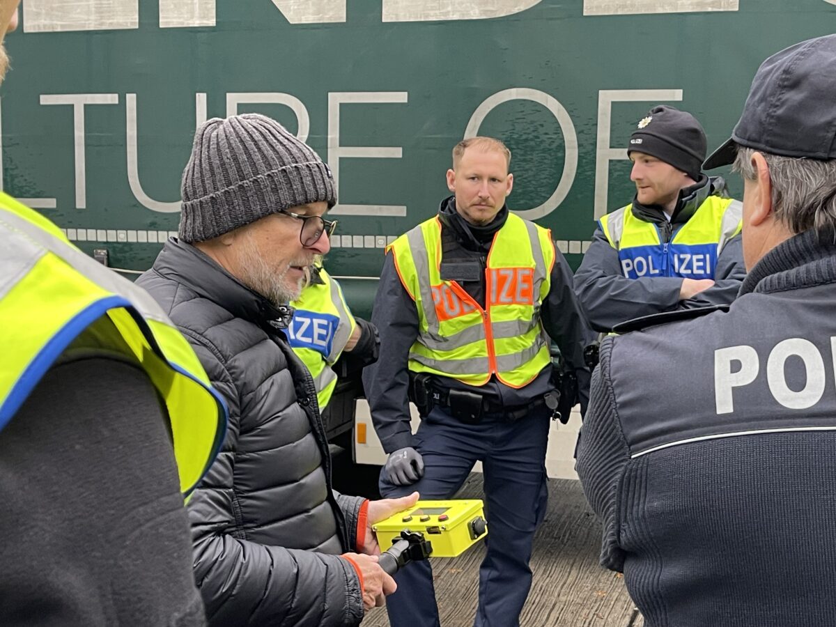 Am Donnerstagvormittag trifft am Ulrichsberg auch Michal Vodrazka von der tschechischen Firma Grant Detection ein. Er übergibt an die Einsatztechniker der Bundespolizei Waidhaus ein neues Gerät: ein Herzschlagmessgerät. Es ermöglicht die Untersuchung der Ladefläche, ohne den Lkw zu öffnen und die Verplompung zu lösen. Wenn der Fahrer ausgestiegen ist, wird das kleine Gerät an den Lkw montiert. Schlägt es an, sind Menschen drin. Nach Auskunft von Vodrazka wird das Gerät bereits in zehn Ländern der EU eingesetzt.