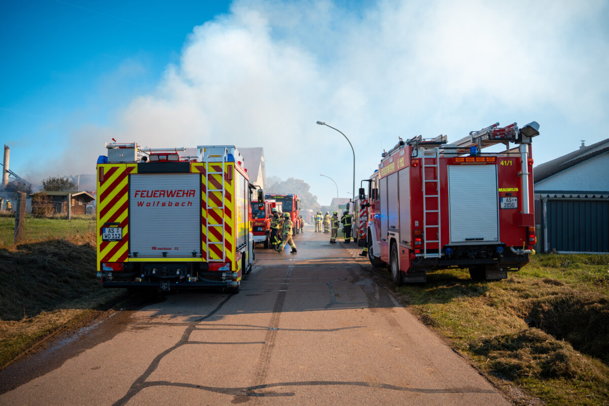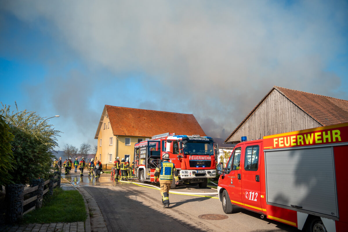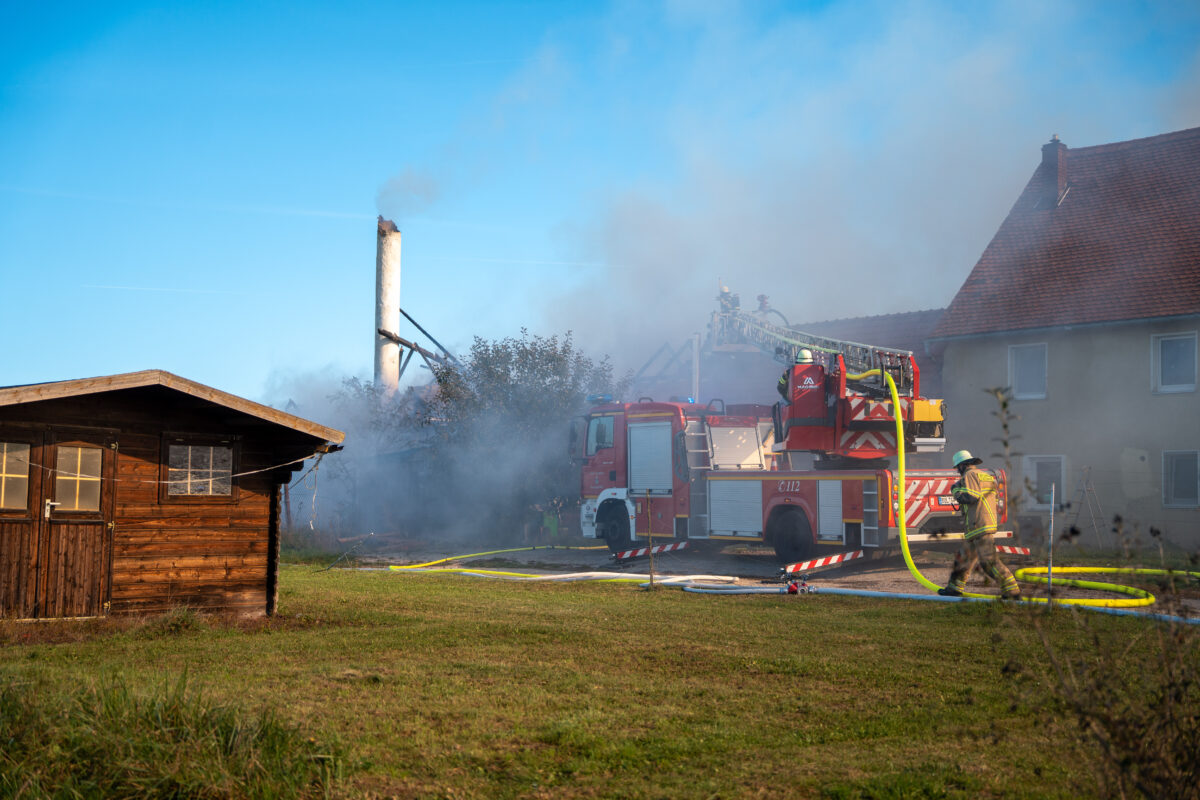 Die Feuerwehr wurde gegen 10.08 Uhr alarmiert. Ein Übergreifen der Flammen von den Nebengebäuden auf das Wohngebäude konnte vorerst verhindert werden. Insgesamt bekämpften 260 Einsatzkräfte aus 20 Feuerwehren den Brand.