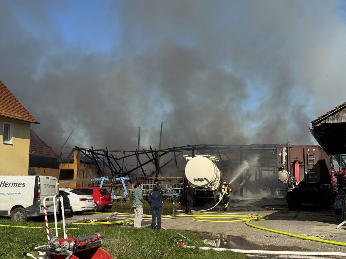 Am Dienstagvormittag kam es in Pilsheim (Landkreis Schwandorf) zu einem Großbrand auf einem landwirtschaftlichen Betrieb. Mehrere Nebengebäude standen in Vollbrand; in ihnen waren unter anderem landwirtschaftliche Maschinen untergebracht.