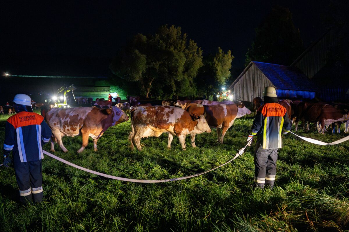 Die etwa 100 Kühe konnten aus den Stallungen befreit werden und auf eine angrenzende Wiese gebracht werden. Von dort aus werden sie in umliegende Bauernhöfe bebracht, wo sie weiter versorgt werden können. Ob Tiere zu Schaden gekommen sind, kann zum aktuellen Stand nicht mitgeteilt werden