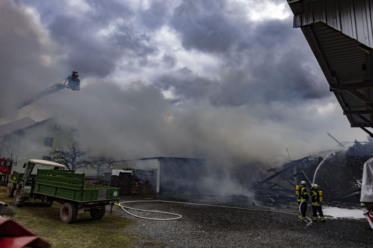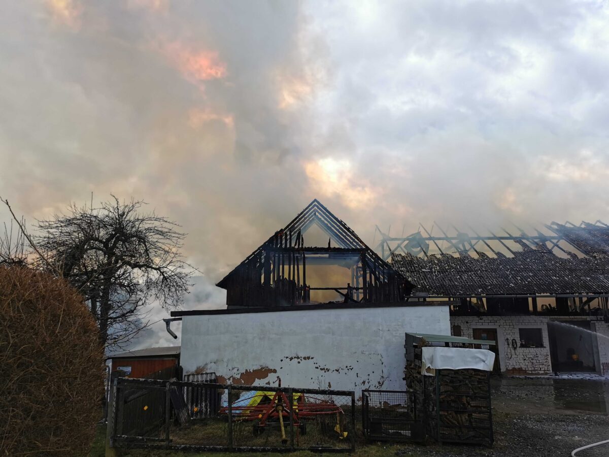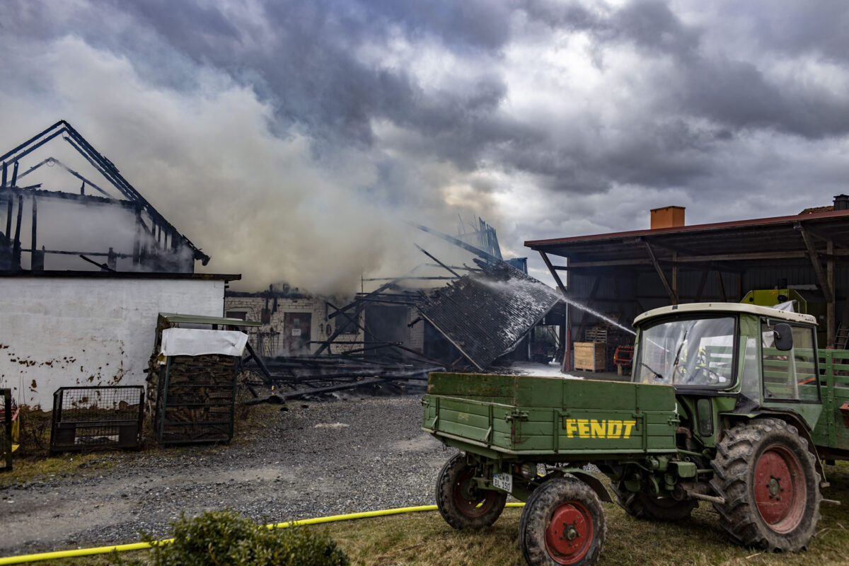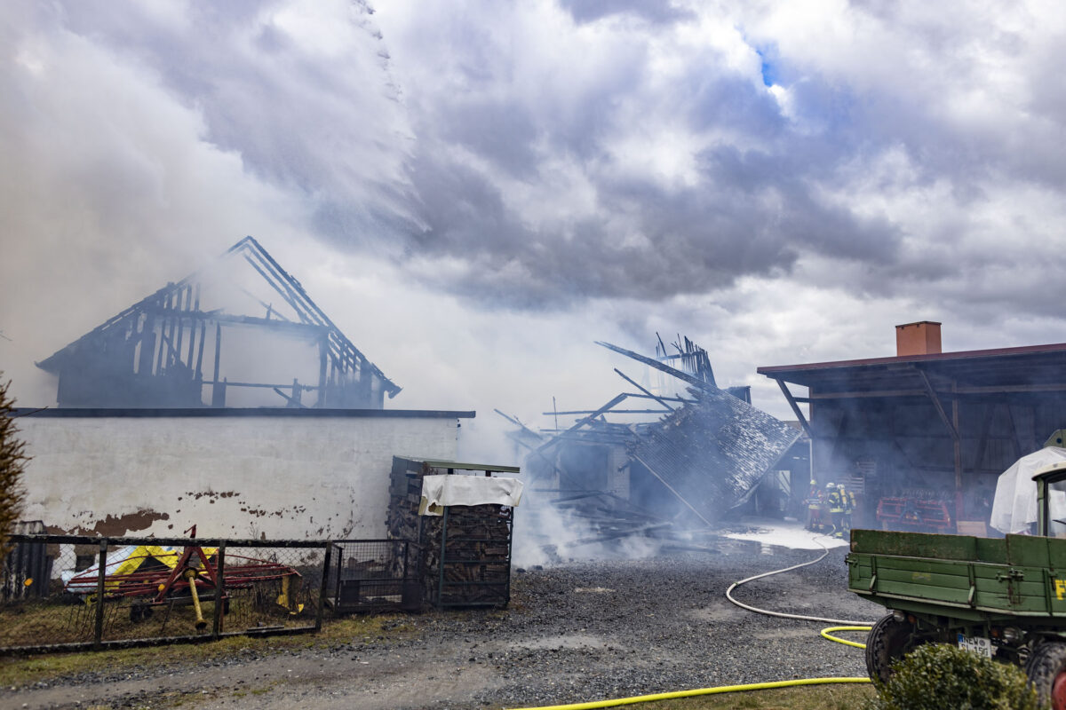 In der Lagerhalle befand sich eine Werkstatt; zudem war ein Hackschnitzellager und ein Heulager untergebracht. Die Löscharbeiten und die Nachaufsicht dauerten mehrere Stunden. Die Lagerhalle ist bis zu den Grundmauern abgebrannt. Die Innere Flosser Straße blieb am Nachmittag gesperrt. Ein Baggerunternehmen nahm weitere Abbrucharbeiten vor. Eine Gefahr für die Bevölkerung bestand nicht, wie die Polizei weiter mitteilt.