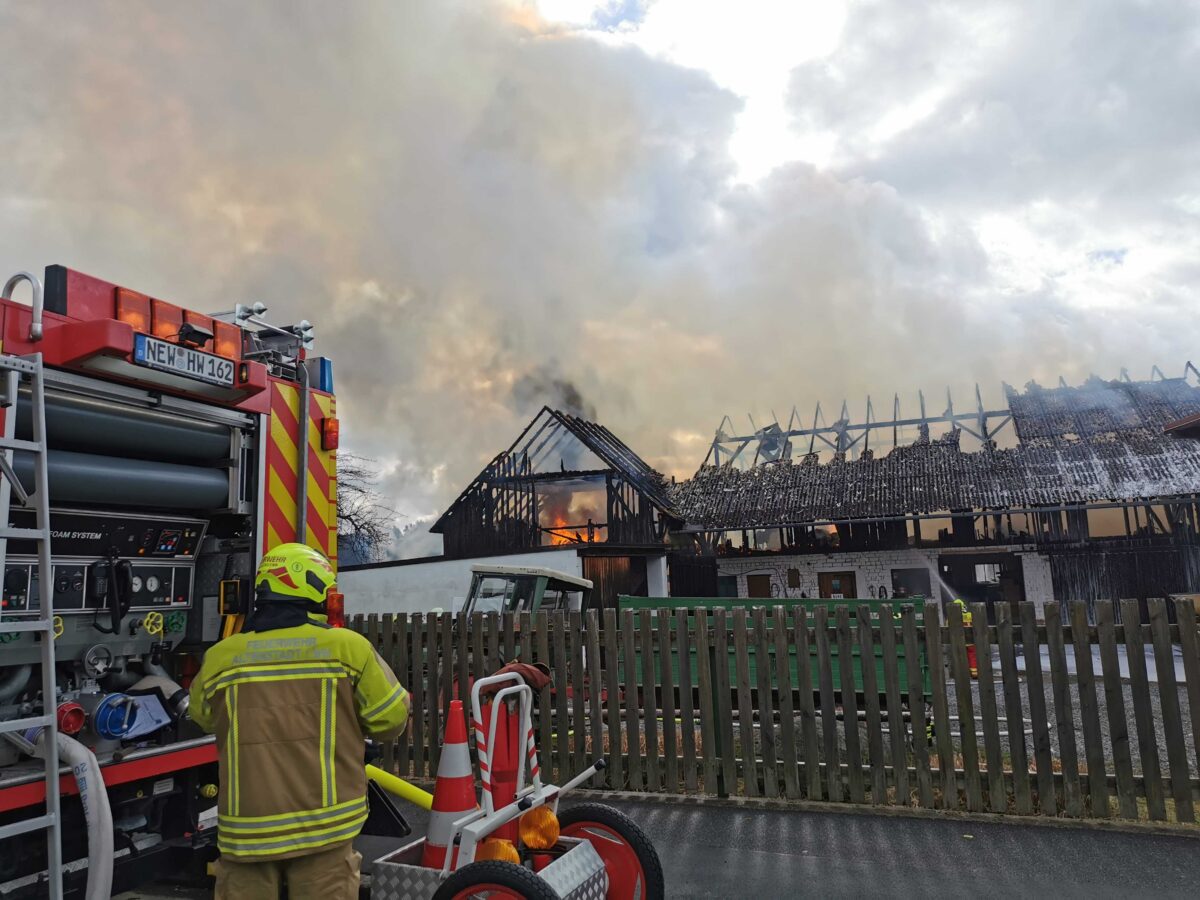Die umliegenden Feuerwehren arbeiten unter Hochdruck um das Feuer unter Kontrolle zu bringen. Laut Polizei wurden zum Glück keine Personen verletzt.