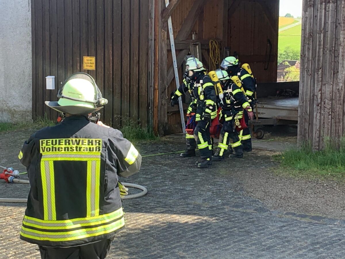 Das Szenario war anspruchsvoll: Mehrere Kinder – gespielt von Mitgliedern der Jugendfeuerwehr – mussten aus dem Dachboden des landwirtschaftlichen Gebäudes gerettet werden, während gleichzeitig Tiere, darunter wertvolle Pferde, aus den Stallungen in Sicherheit gebracht werden sollten.