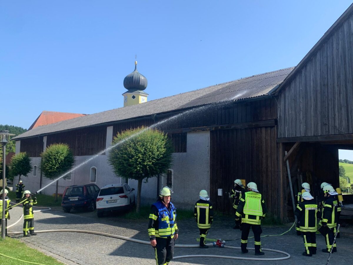 Die Übung verfolgte mehrere Ziele: Fahrzeugaufstellung unter beengtem Raum, Prüfung der Wasserversorgung über längere Strecken und die Gewöhnung der Einsatzkräfte an den Umgang mit Tieren. Während der gesamten Übung waren auch Kreisbrandinspektor Martin Weig und Kreisbrandmeister Christian Demleitner vor Ort.