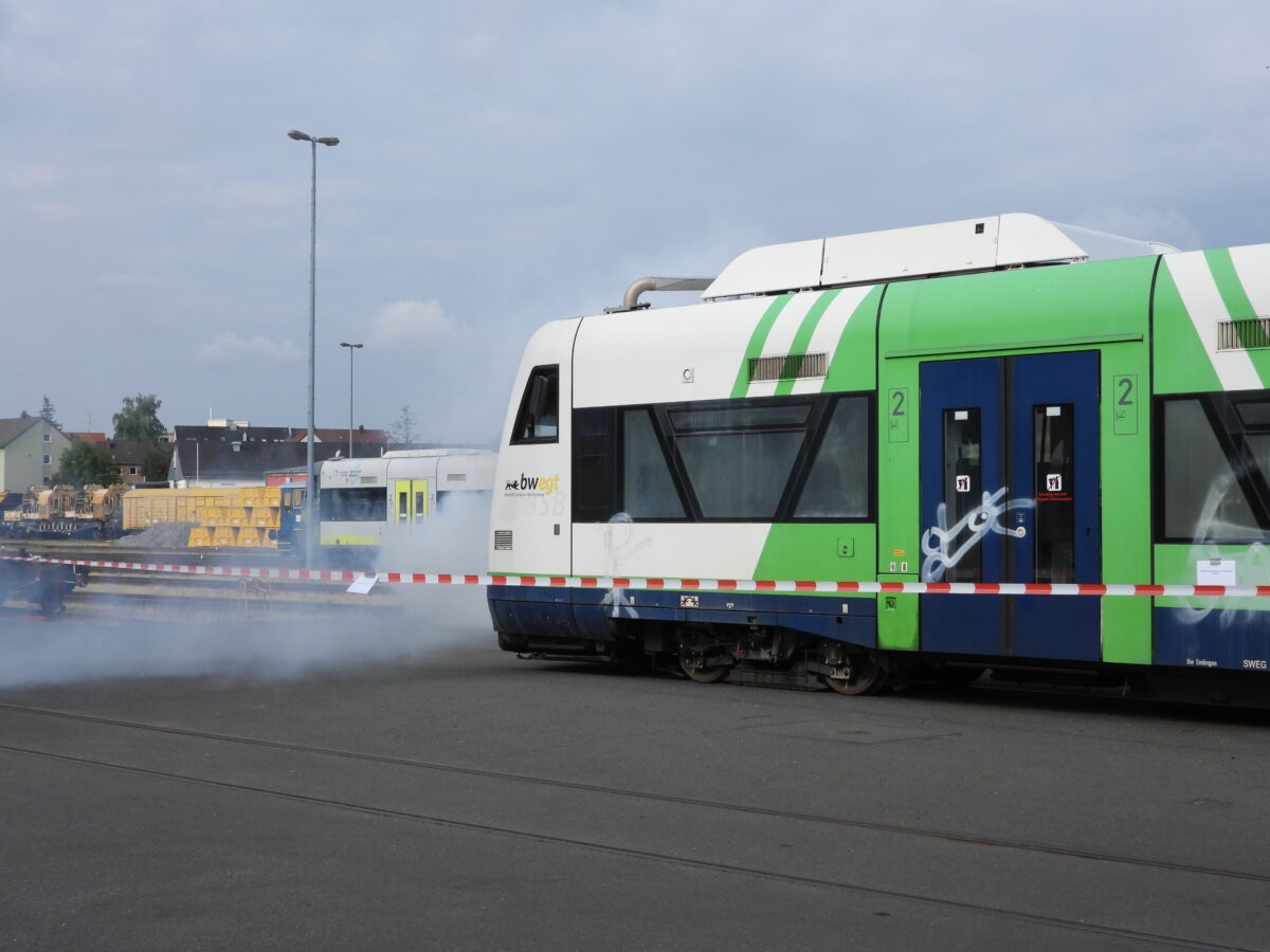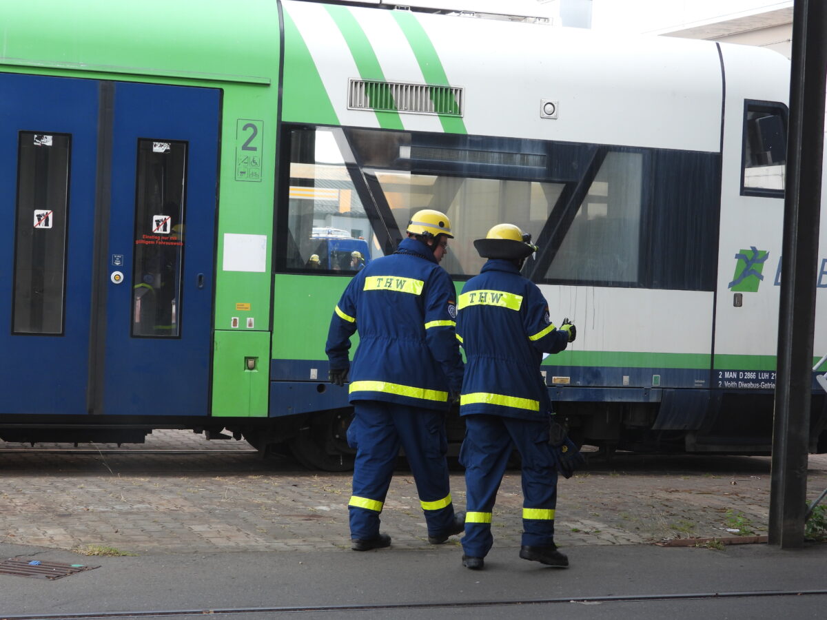 Nach einer kurzen Verschnaufpause für eine Tasse Kaffee hatten sich die Übungsorganisatoren schon das nächste Szenario überlegt, welches gleichzeitig das Highlight der fast 24 Stunden andauernden Übung darstellte: “Aufgrund einer Signal- und Weichenstörung auf der Bahnstrecke Regensburg – Hof ist ein mit mehreren Menschen besetzter Personenzug auf das Werksgelände der OWS in Weiden gerauscht. Der Zug ist dabei mit einem anderen Schienenfahrzeug kollidiert und erst kurz vor einer Werkshalle zum Stehen gekommen.”