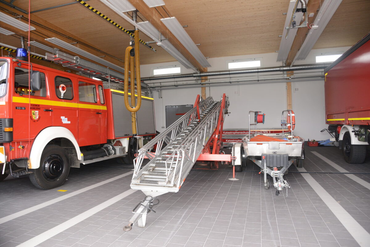 Es ist gelungen, in vierzehnmonatiger Bauzeit ein Feuerwehrgerätehaus zu bauen, das von einer Fahrzeughalle mit fünf Stellplätzen für die vier Fahrzeuge der Wehr und für die notwendigen Anhänger geprägt wird. Die Halle hat eine Fläche von rund 290 Quadratmetern, die angebaute Waschhalle rund 70 Quadratmeter. Hier können die Fahrzeuge der drei örtlichen Feuerwehren gewaschen und gewartet werden, ebenso ist es möglich, die Fahrzeuge des Bauhofes dort ebenfalls zu pflegen.
