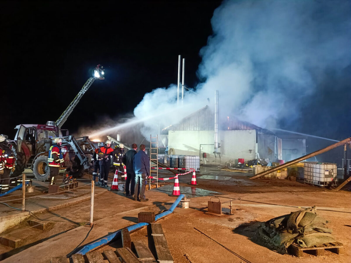 Laut ersten Informationen stand die Halle, in der die Biogasanlage des Betriebs untergebracht ist, in Flammen. Die Feuerwehr war mit einem größeren Aufgebot an Einsatzkräften vor Ort und brachte das Feuer unter Kontrolle.