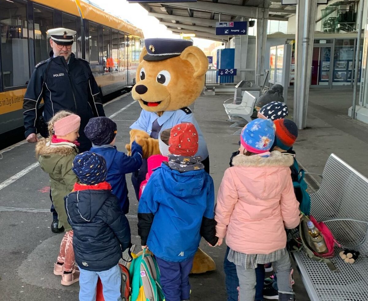 Kindgerecht erklärten Josef Prill und Beate Meyer vom Präventionsteam die richtige Verhaltensweise bei Zugreisen und welche Gefahren in und um die Bahngleise auf die Kids lauern. “Es ist sehr wichtig, frühzeitig mit der Aufklärung über die Sicherheit im Bahnverkehr zu beginnen”, so Prill. Die Besichtigung des Bundespolizeireviers und die Ausstellung eines Kinderpolizeiausweises rundeten das Programm ab.