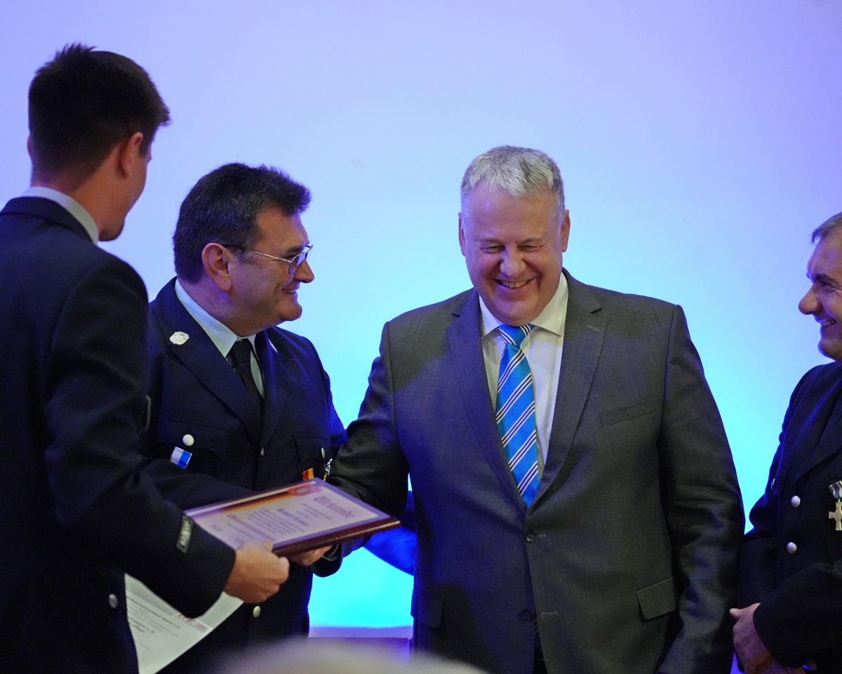 Bei den anschließenden Grußworten zollte zunächst Landtagsabgeordneter Harald Schwartz allen Geehrten seinen Respekt und versicherte auch weiterhin tatkräftig für die Feuerwehren einzustehen. Erlebt habe er auch noch nie einen Feuerwehrvorstand, der in seiner Begrüßung ein lateinisches Zitat mit einbrachte.