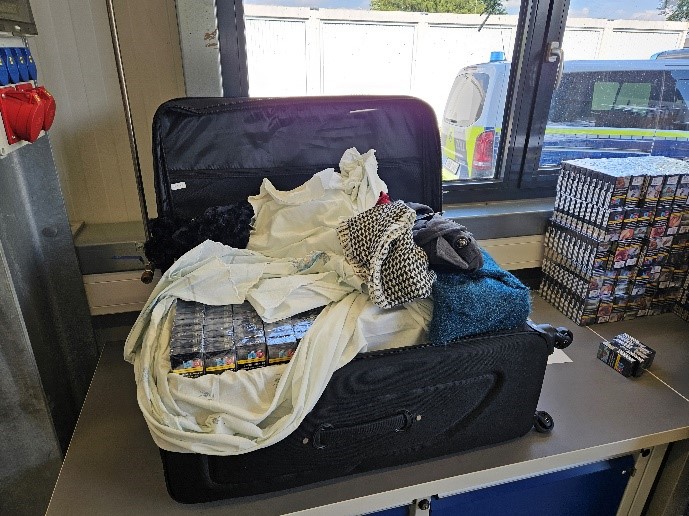 Die Beschuldigten, ein 48-jähriger Mann und eine 19-jährige Frau, befanden sich als Mitfahrer in einem Kastenwagen mit rumänischer Zulassung. Sie gaben an, auf dem Weg nach Großbritannien zu sein. Im Laderaum des Fahrzeugs fanden die Beamten zuerst einen Koffer voller Zigaretten. Bei der weiteren Durchsuchung des Fahrzeugs entdeckten sie insgesamt vier Koffer, die mit den Schmuggelzigaretten gefüllt waren. Die Zigaretten trugen eine bulgarische Steuerbanderole, was auf eine unversteuerte Einfuhr hindeutete.