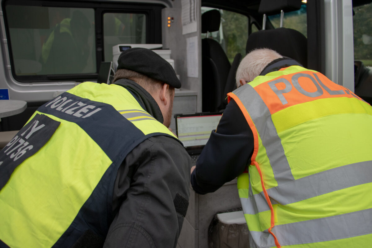 „Führerschein und Fahrzeugpapiere bitte“, war ein Satz, der an diesem Tag ziemlich oft zu hören war. Aber eben ein sehr wichtiger, denn nur so kann die Polizei das Fahrzeug sowie die fahrende Person kontrollieren. Dadurch können die ersten Straftaten festgestellt werden. Viel technisches Equipment erleichtere den Beamten die Arbeit. So kamen die Blitzer und digitale Kontrollgeräte zum Einsatz, auf denen Informationen wie Ruh- und Lenkzeiten und Fahrzeuggeschwindigkeiten ausgelesen werden. Auch wichtig ist die mobile Waage, um Fahrzeuge auf Überladung zu prüfen.