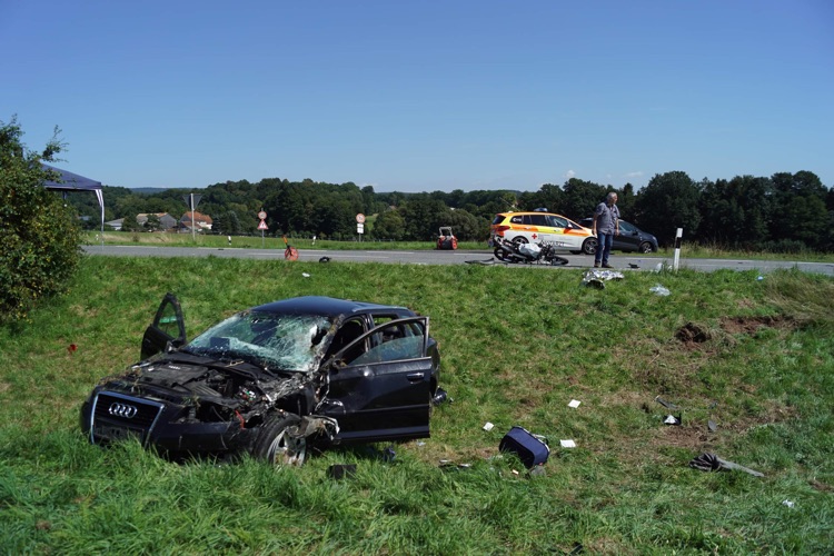 Der erste Kradfahrer, ein 35-Jähriger aus dem westlichen Landkreis Neustadt/WN, prallte in die Front des Audi. Er erlitt lebensgefährliche Verletzungen. Nach der Erstversorgung an der Unfallstelle durch einen Notarzt verbrachte ihn der Rettungshubschrauber Christoph 80 ins Klinikum Weiden. Es besteht Lebensgefahr.