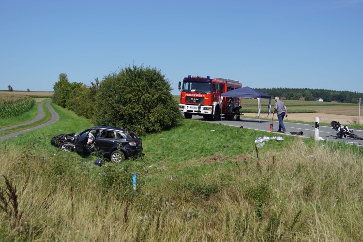Ein unmittelbar darauffolgender Fahrer eines neuwertigen Kleinkraftrades konnte offensichtlich ebenfalls nicht mehr ausweichen und prallte seitlich in den Audi. Nach Auskunft der Ersthelfer kam für den 63-Jährigen aus Regensburg jede Hilfe zu spät. Er verstarb an der Unfallstelle.