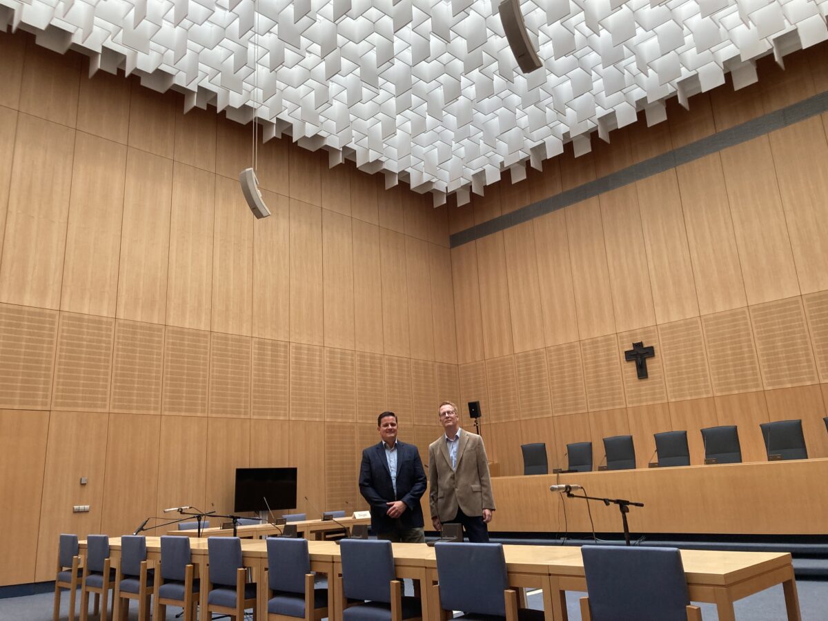 Historische Fotos beweisen: Der Schwurgerichtssaal sieht im Prinzip noch genauso aus wie vor 57 Jahren. “Wir haben nächstes Jahr vor, den Schwurgerichtssaal insgesamt zu erneuern”, verrät der Geschäftsleiter. Hintergrund ist die Einführung der elektronischen Akte auch in Strafsachen, die voraussichtlich Ende 2024 auf die Justiz zukommt. Dann braucht es Computer an den Richtertischen. Auch Videoanlagen sind inzwischen obligatorisch. Vorausschauend will Greiner die Möglichkeit von Audio-Aufnahmen mit einplanen, “selbst wenn das erst in ein paar Jahren kommt”. Schon lange wird der obligatorische Audio-Mitschnitt in Prozessen diskutiert.